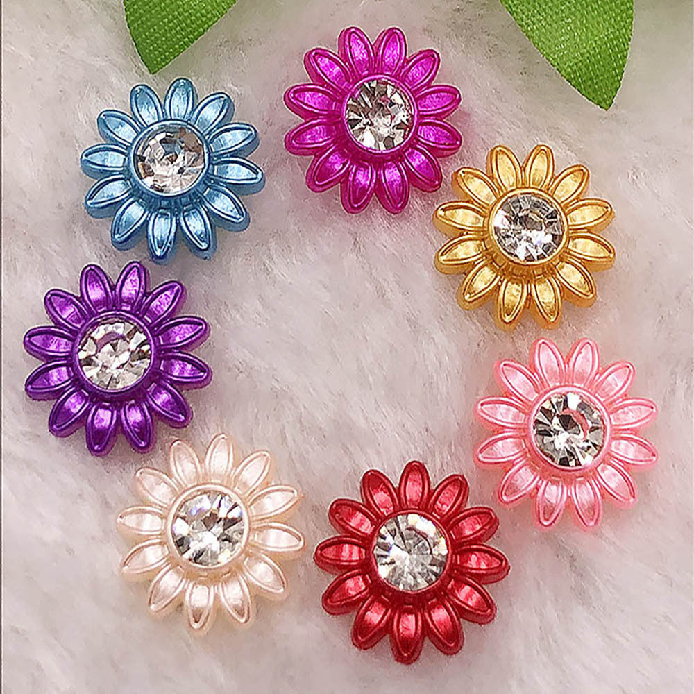Create stunning crafts with this set of 10 resin sunflower buttons adorned with rhinestones. Perfect for DIY projects.