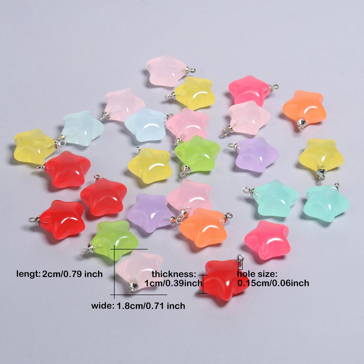 Add a touch of whimsy and sparkle to your jewelry projects with this set of 10 mixed resin star charms. Perfect for bracelets, necklaces, earrings, keychains, and more!