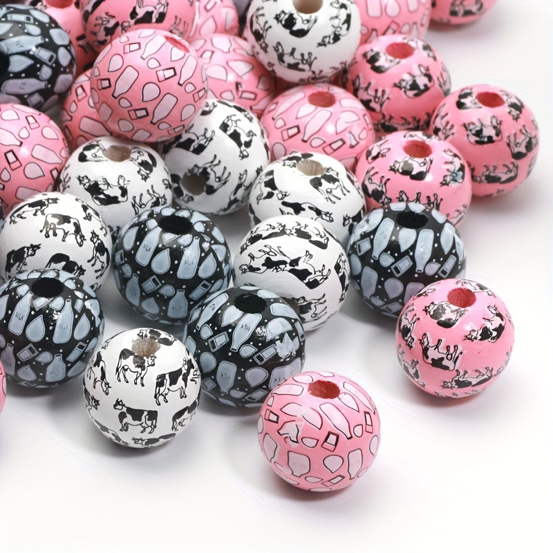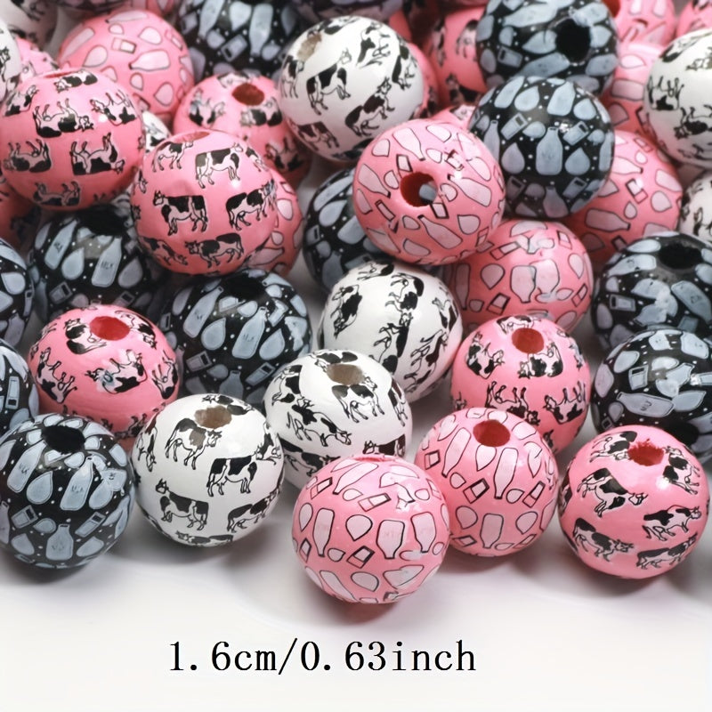 Add a unique touch to your jewelry creations with these 10pcs mixed style bottle cow pattern wooden beads. Perfect for making bracelets, necklaces, and more.
