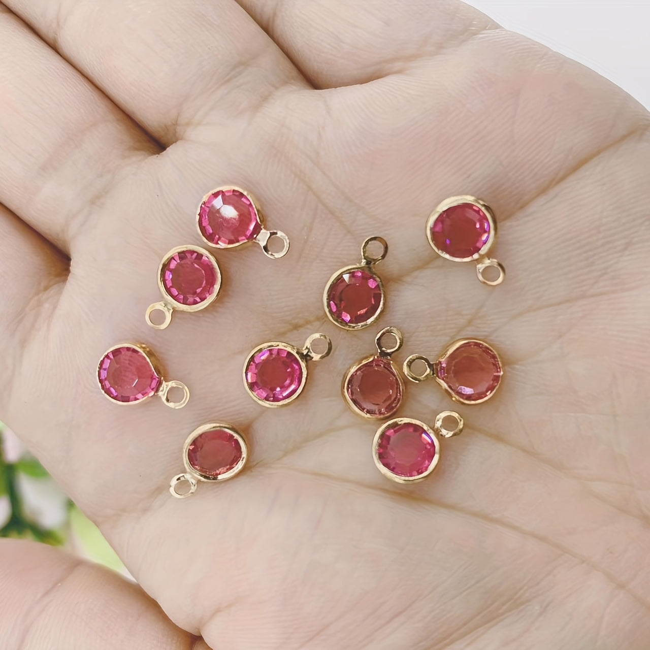These 10PCS round crystal glass pendants with copper edges are perfect for creating DIY jewelry. They can be used to make earrings, bracelets, necklaces, and more.