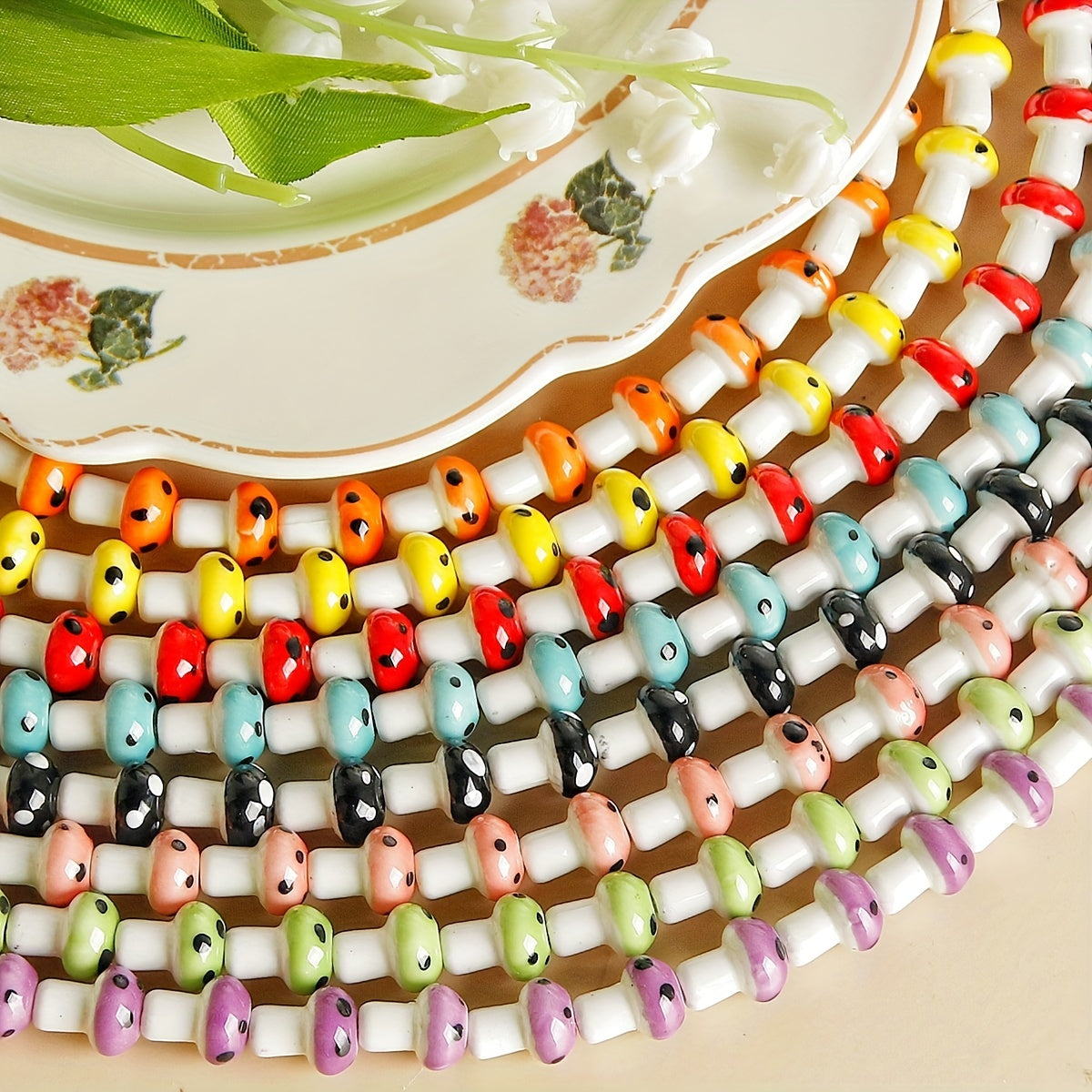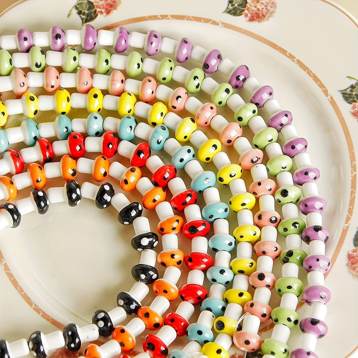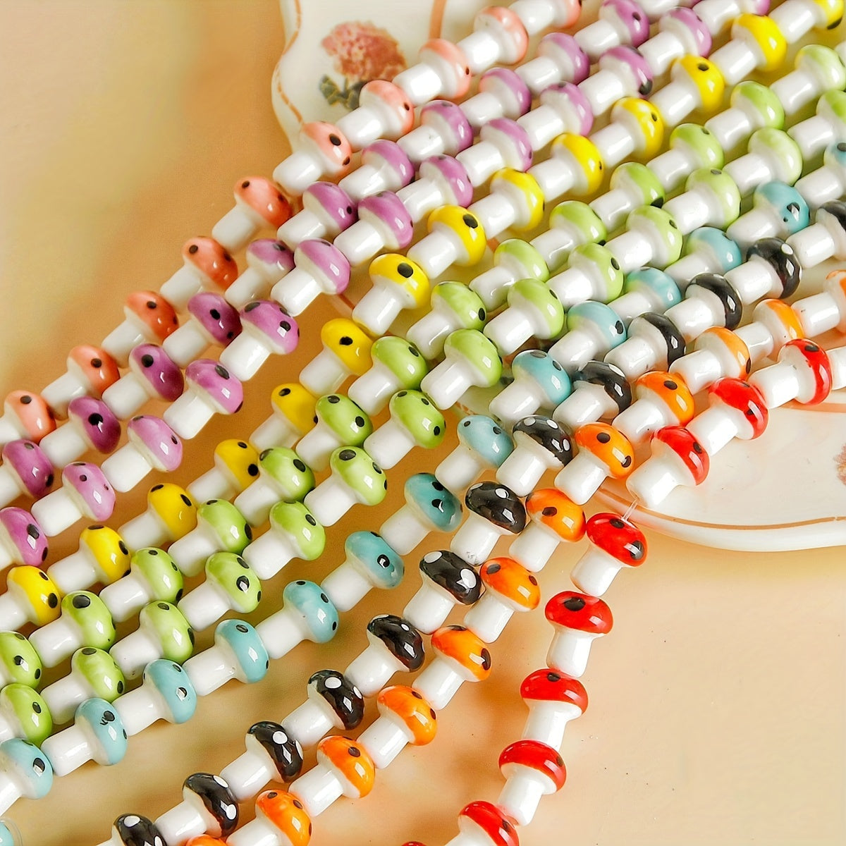Add a pop of color to your jewelry creations with these mushroom-shaped glass beads. Perfect for making necklaces, earrings, bracelets, and other DIY crafts.