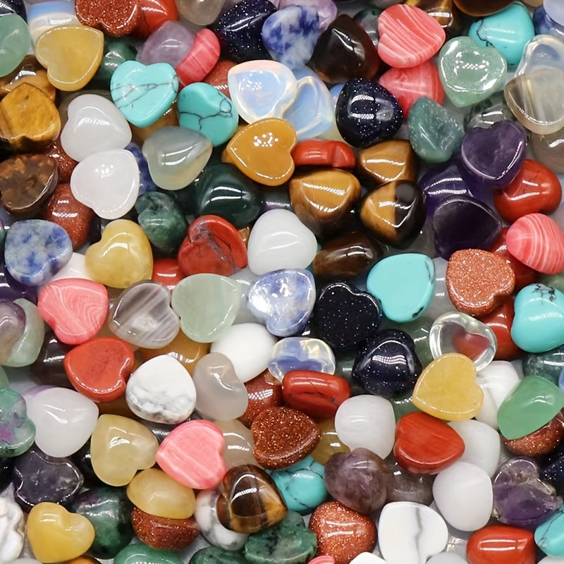 Enhance your jewelry making with these 10pcs natural crystal love rings featuring heart shapes. The single curved face and flat peach heart design make them ideal for DIY projects.