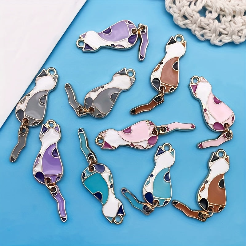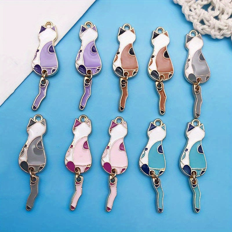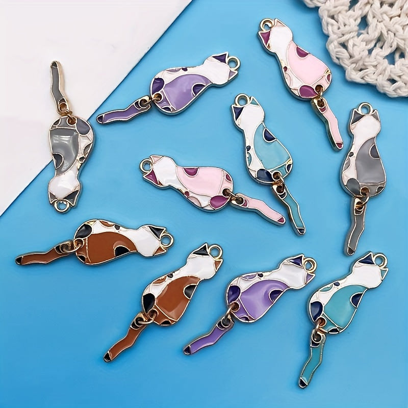 Get this pack of 10 zinc alloy enamel cat pendant charms in 5 different colors for your bracelet, necklace, or other jewelry making projects.