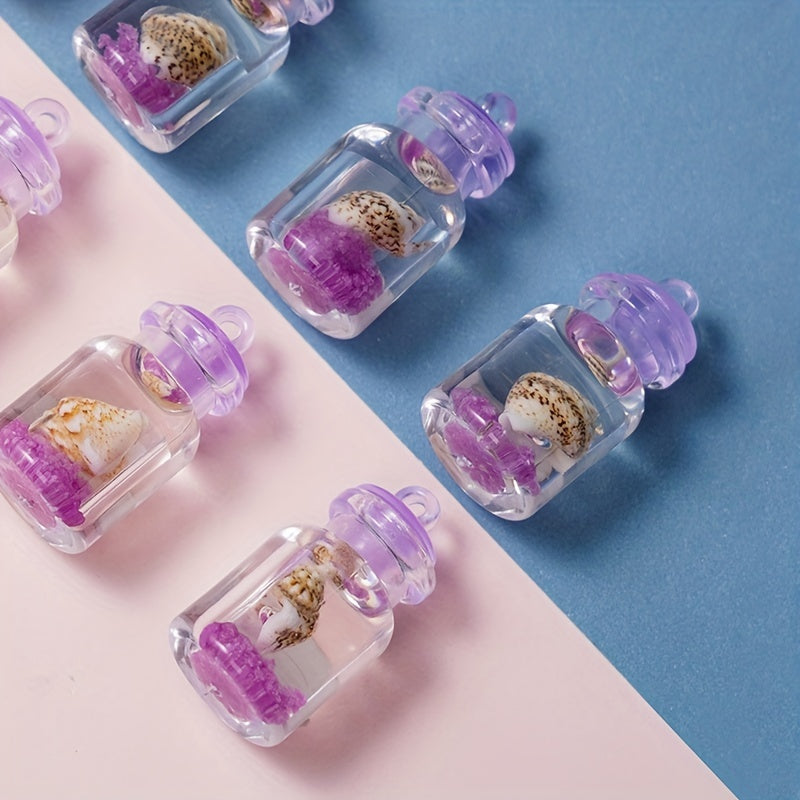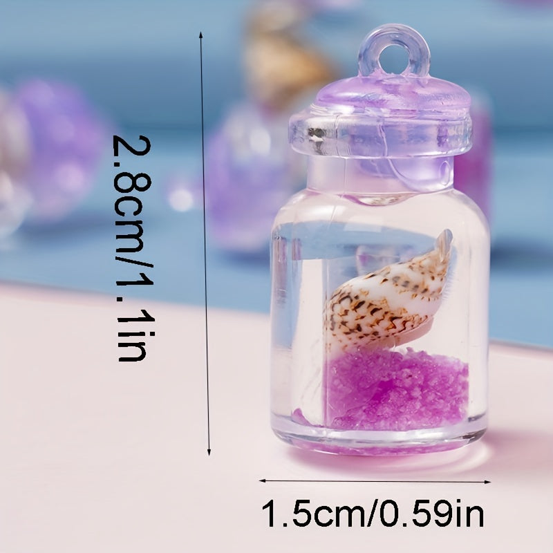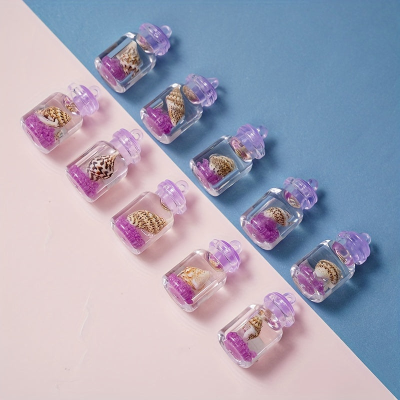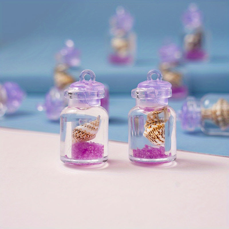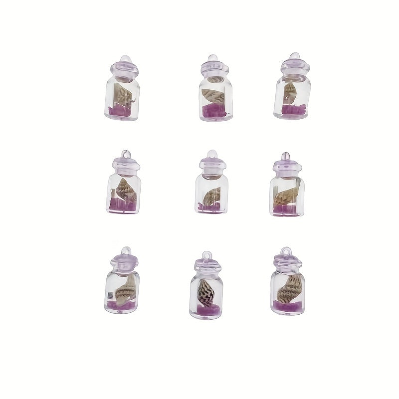 This pack includes 10pcs of purple conch crystal bottle pendants that can be used for making necklaces, earrings, mobile phone chains, and keychains.