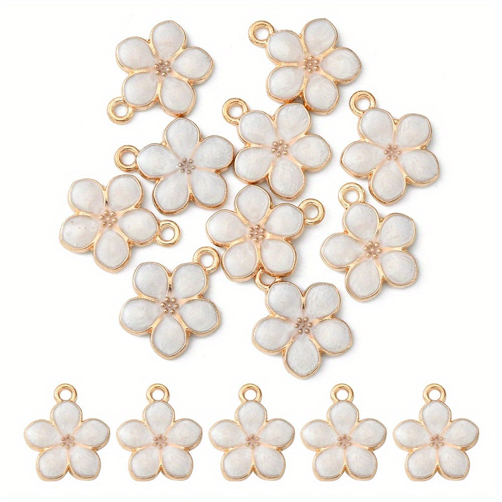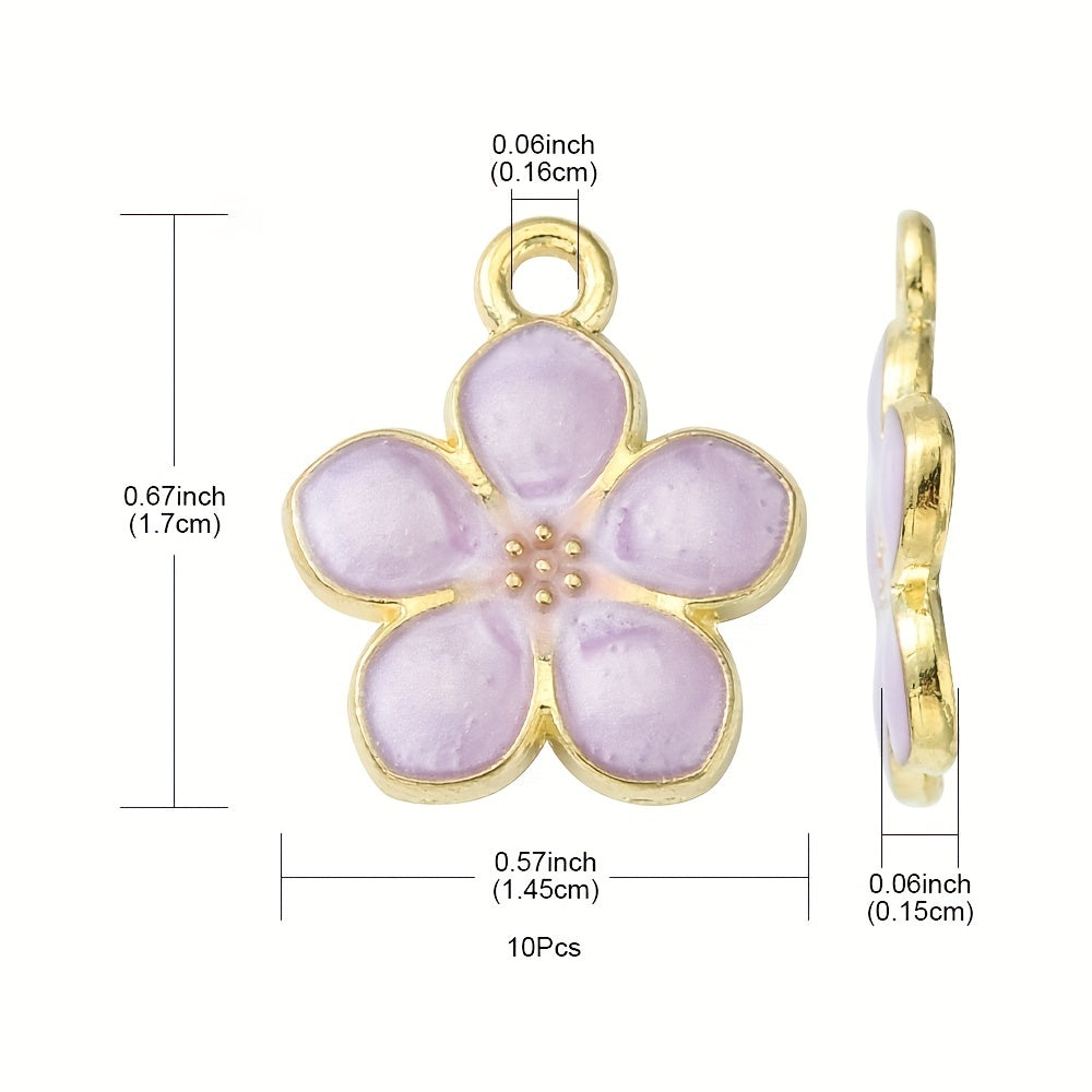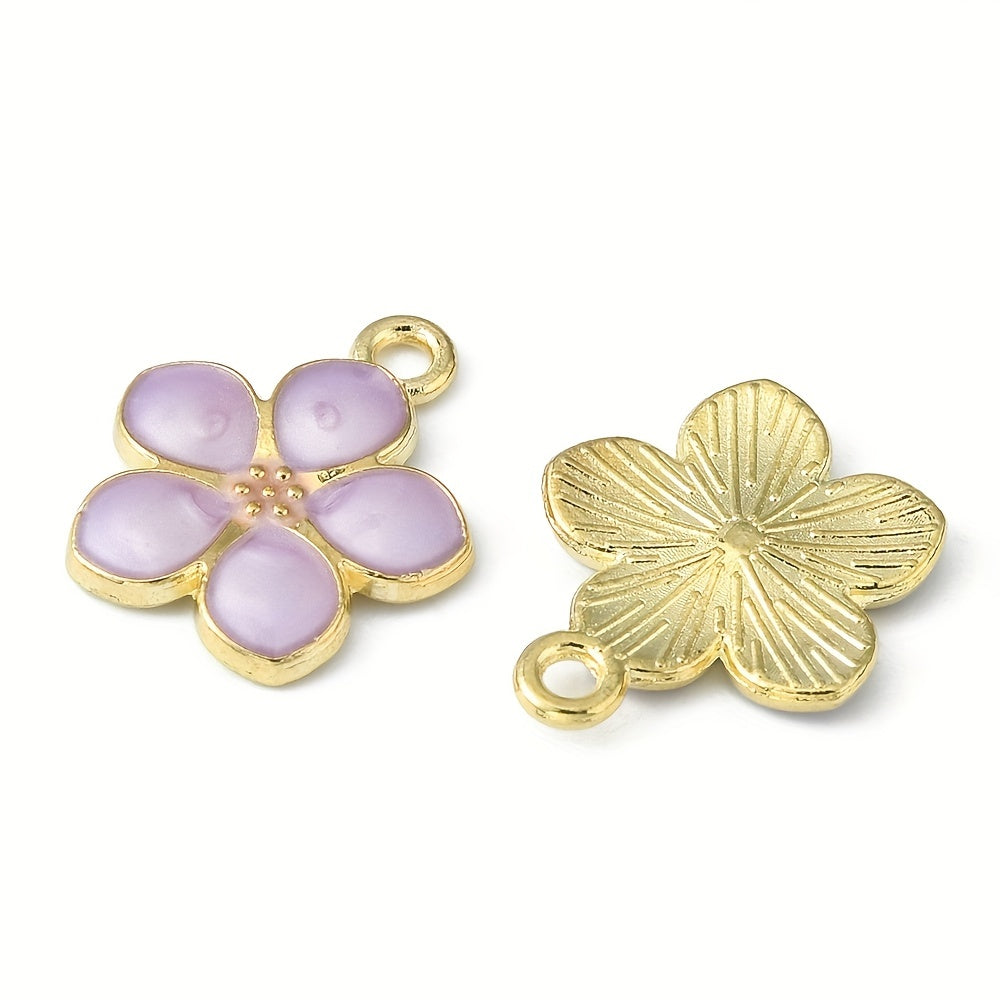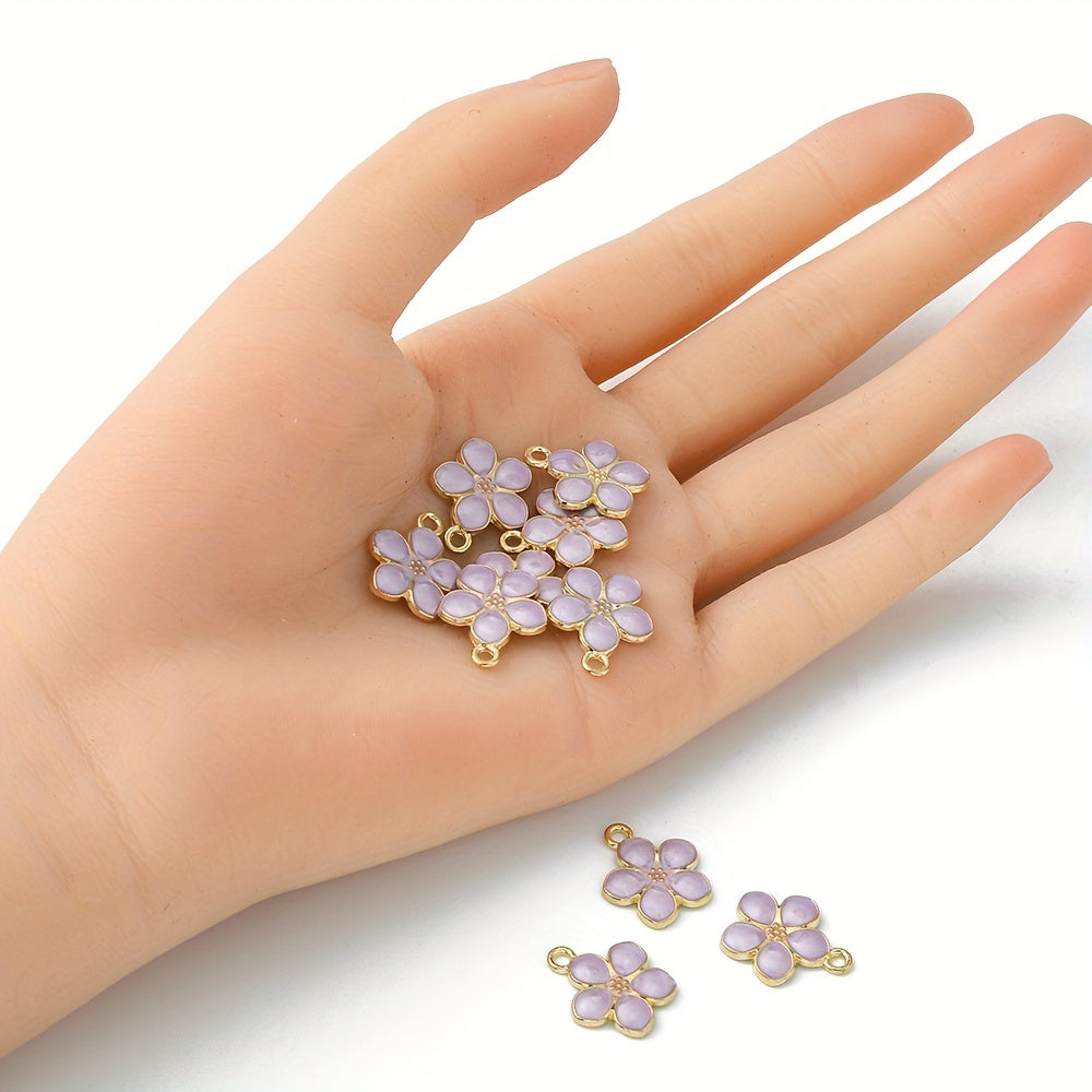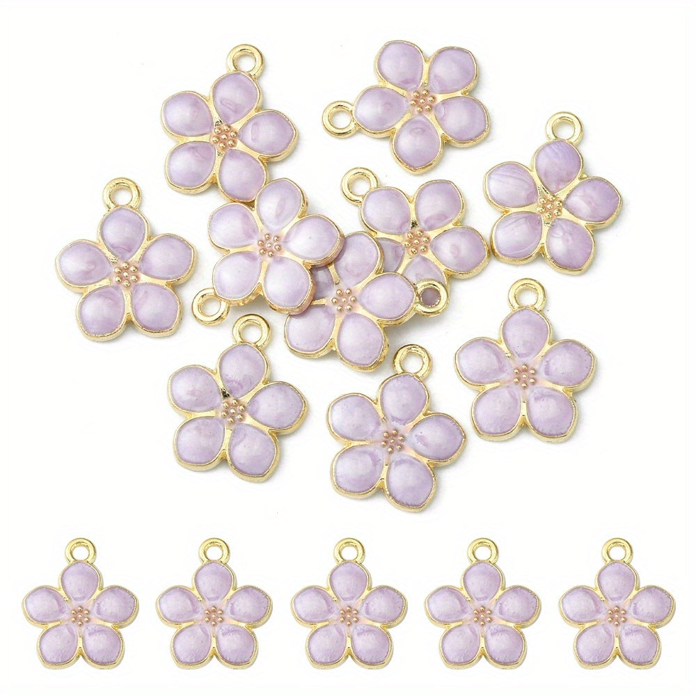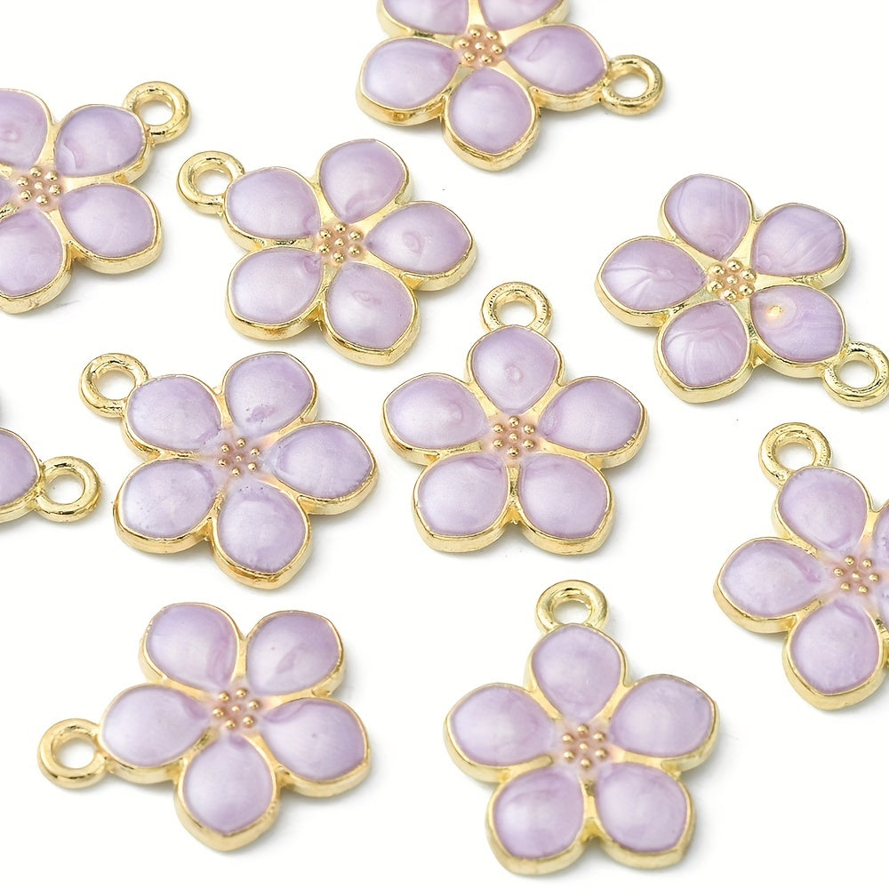 Enhance your jewelry making with these 10pcs purple flower golden alloy pendants. Perfect for earrings, bracelets, necklaces, and more.