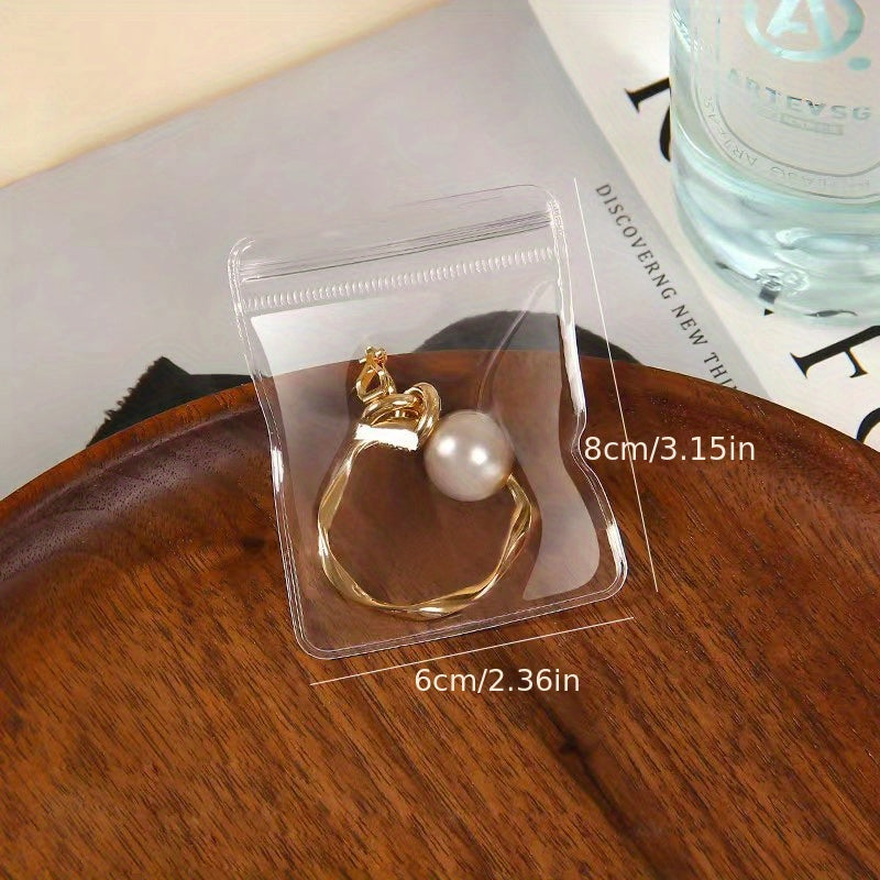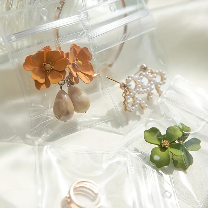 Keep your jewelry organized and secure with this set of 10 PVC plastic pouches. Perfect for storing rings, earrings, and necklaces.