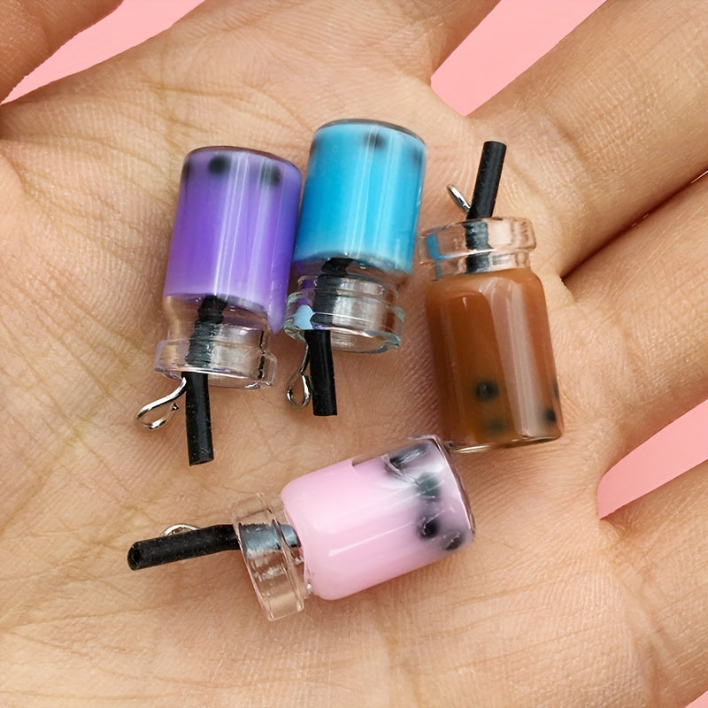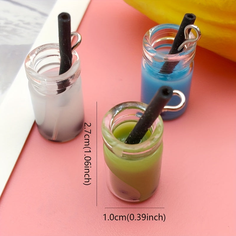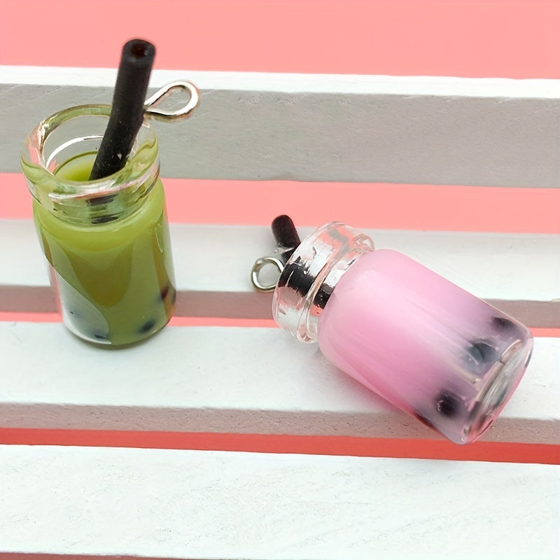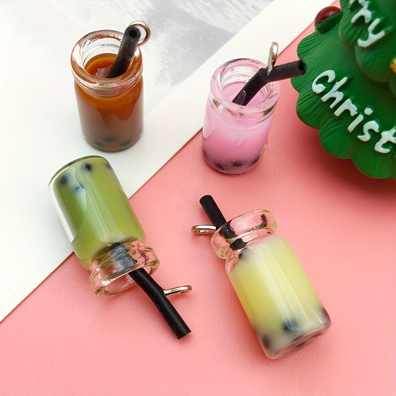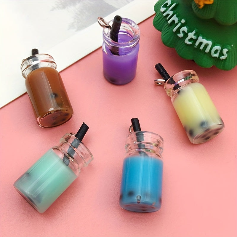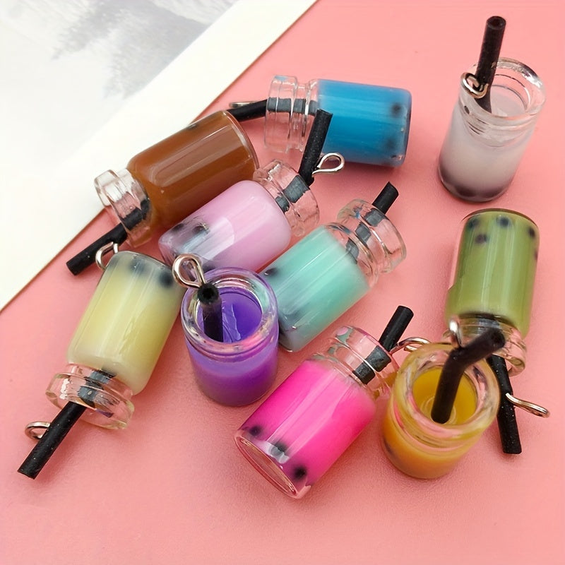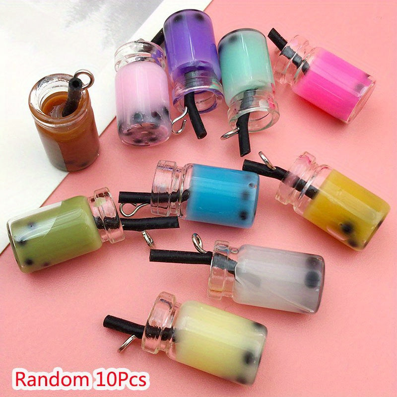 Get a 10pcs pack of 10x27mm resin pearl milk tea glass bottle charms perfect for creating necklaces, bracelets, earrings, and keychains. Ideal for DIY jewelry projects.