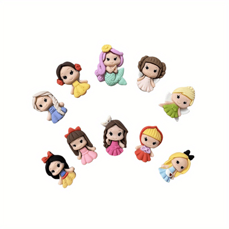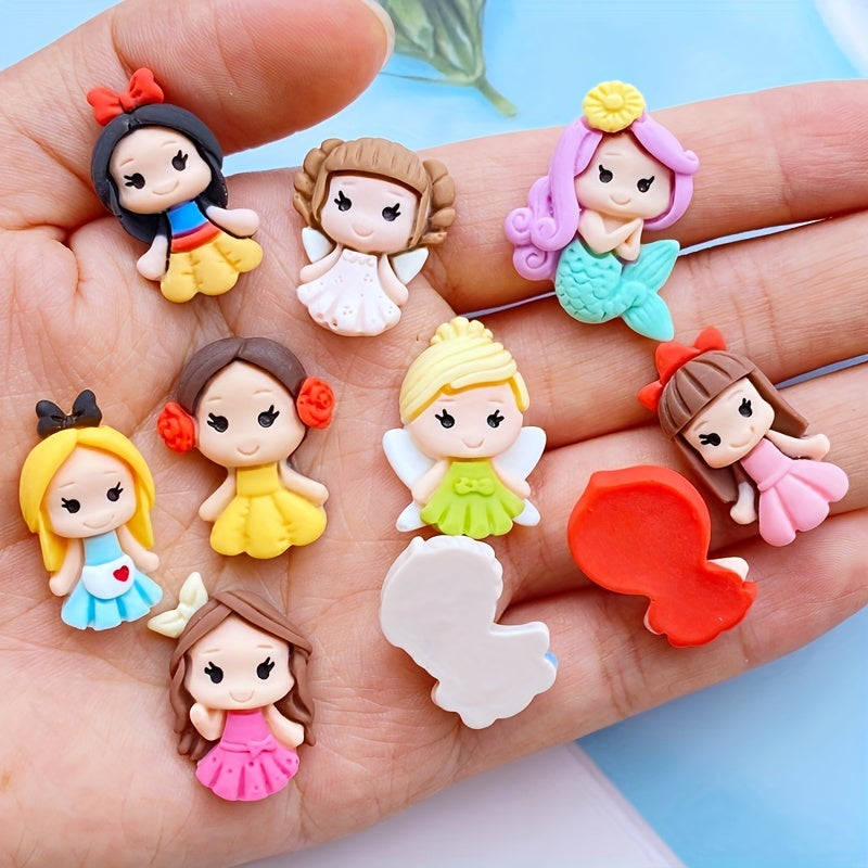 These 10pcs resin cartoon princess embellishments are perfect for scrapbooking, furnishing, hairpins, phone case DIY, and holiday greeting cards.