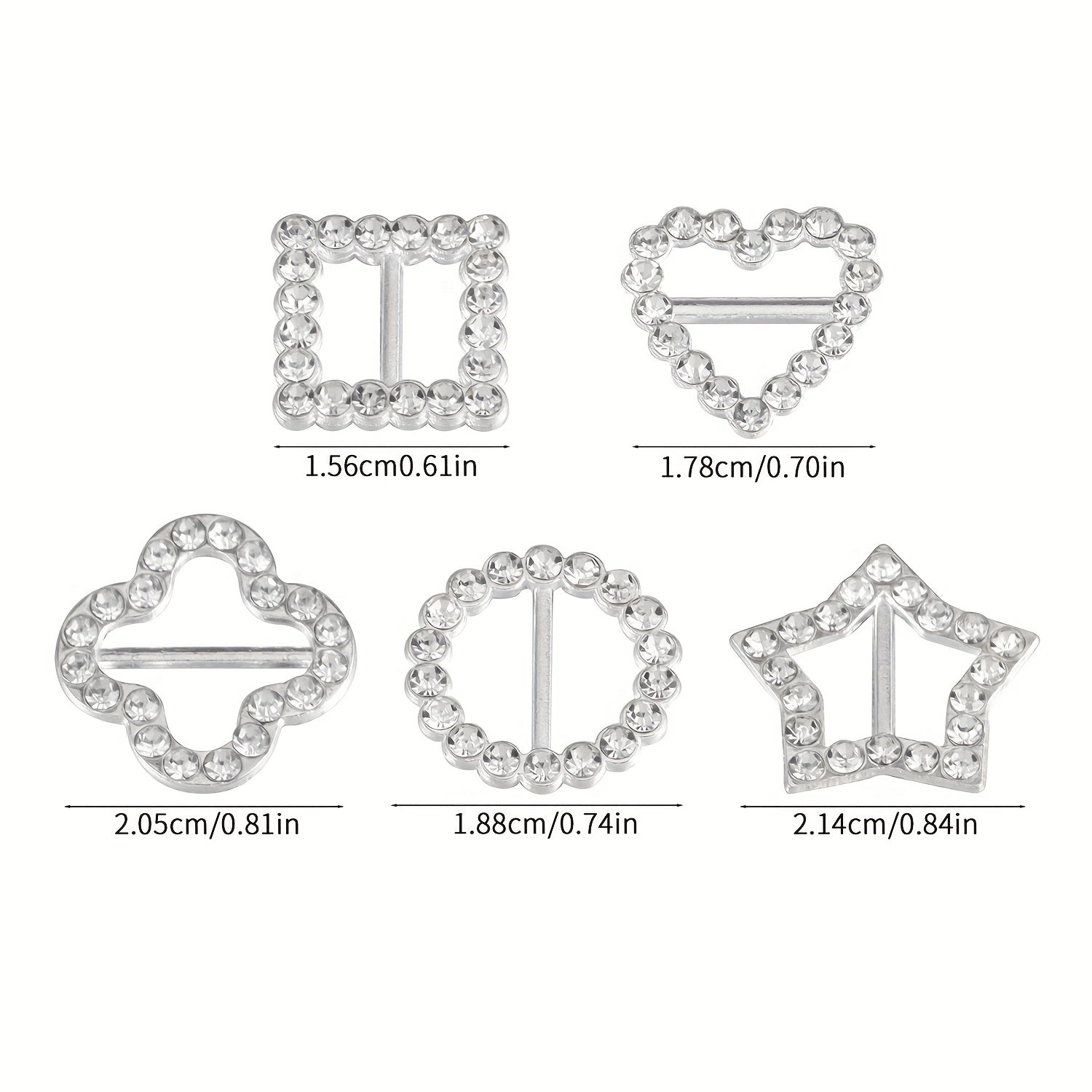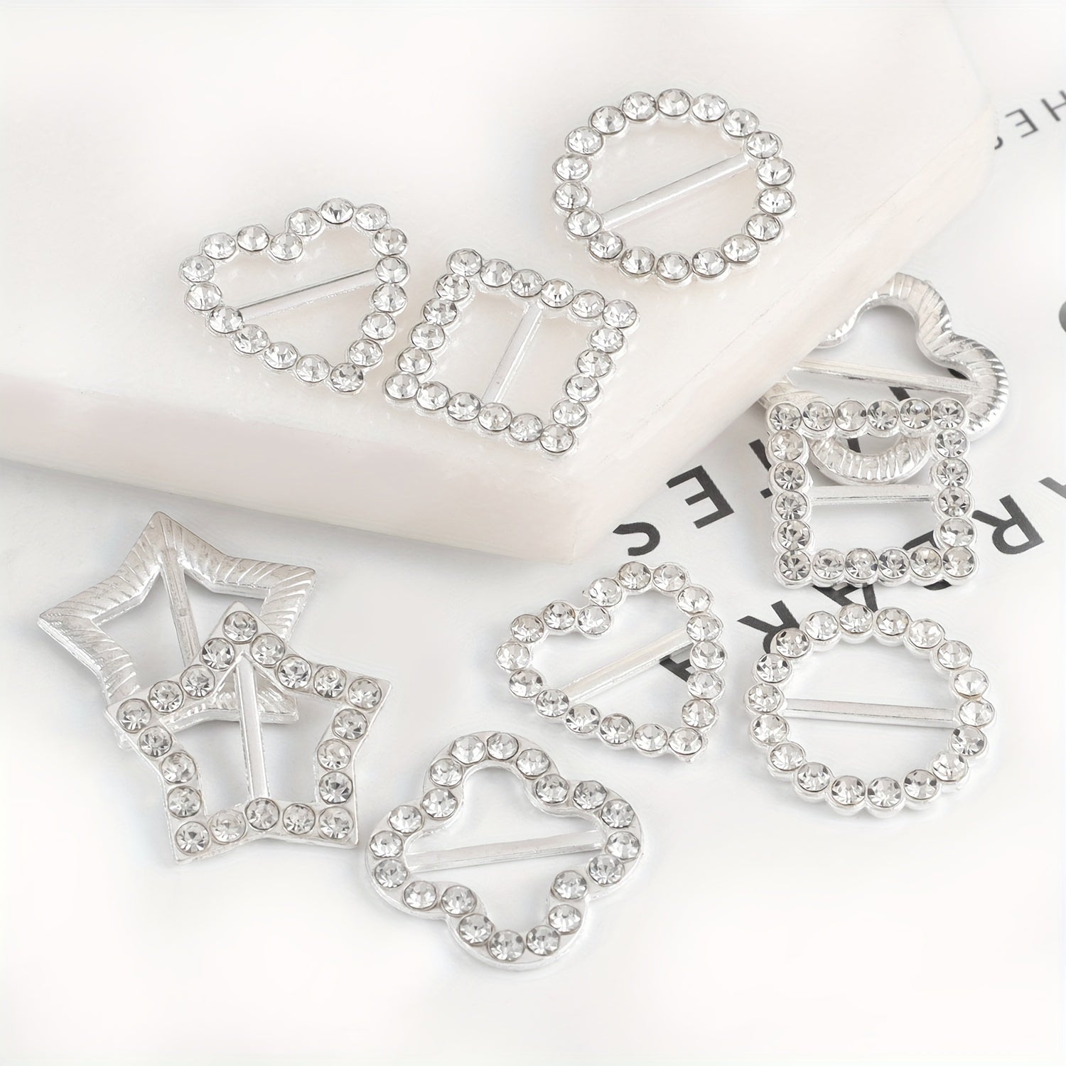 Add some sparkle to your outfits with these rhinestone charms clothing buckles. Perfect for scarves, shirts, and more, these metal corner square round heart-shaped charms are a stylish addition to any wardrobe.