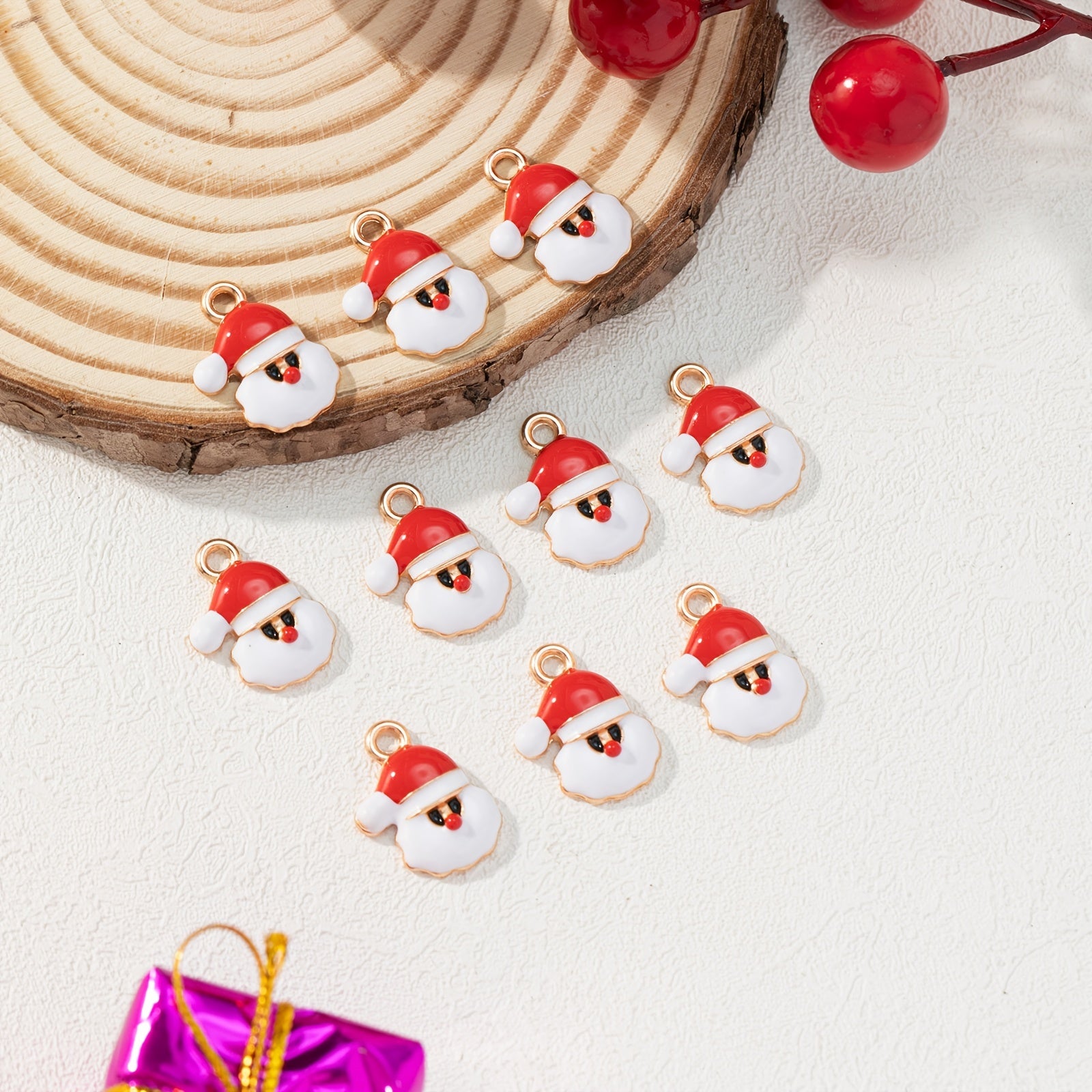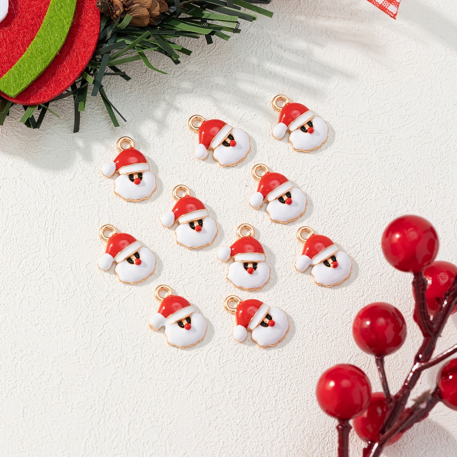 Enhance your Christmas jewelry collection with these 10pcs Santa Claus alloy pendants. Perfect for DIY projects and creating festive accessories.