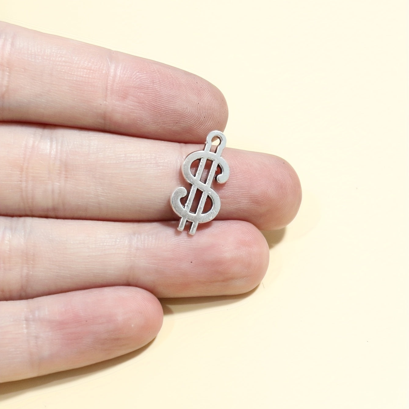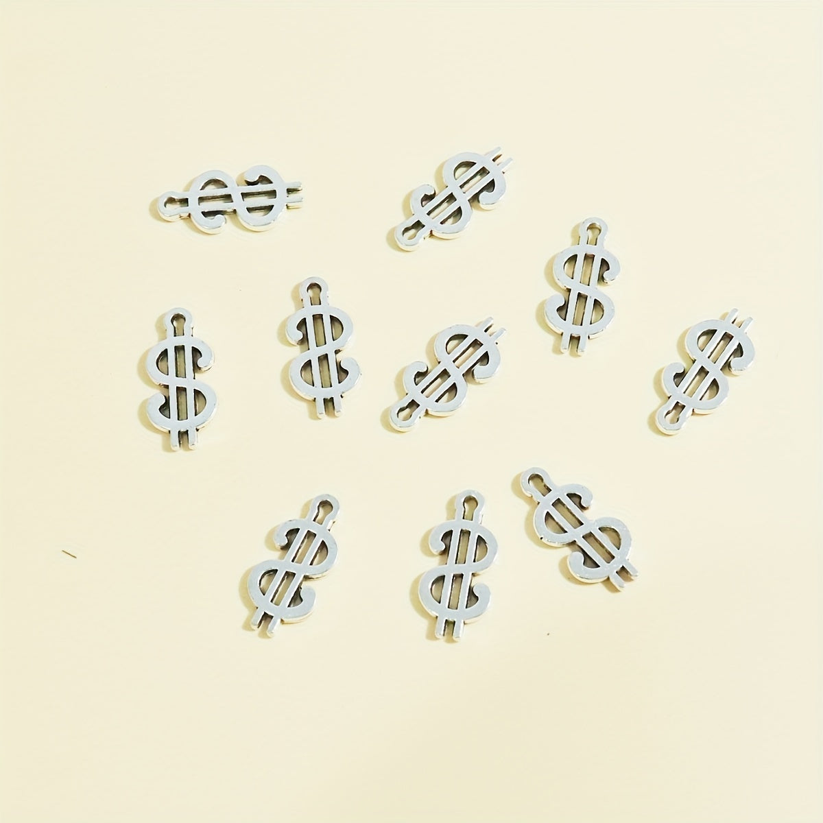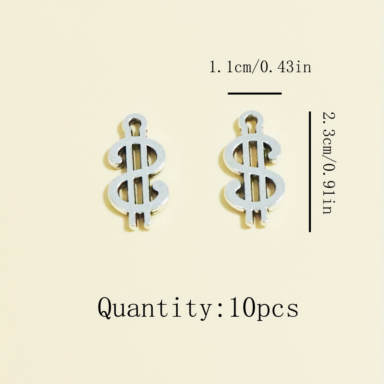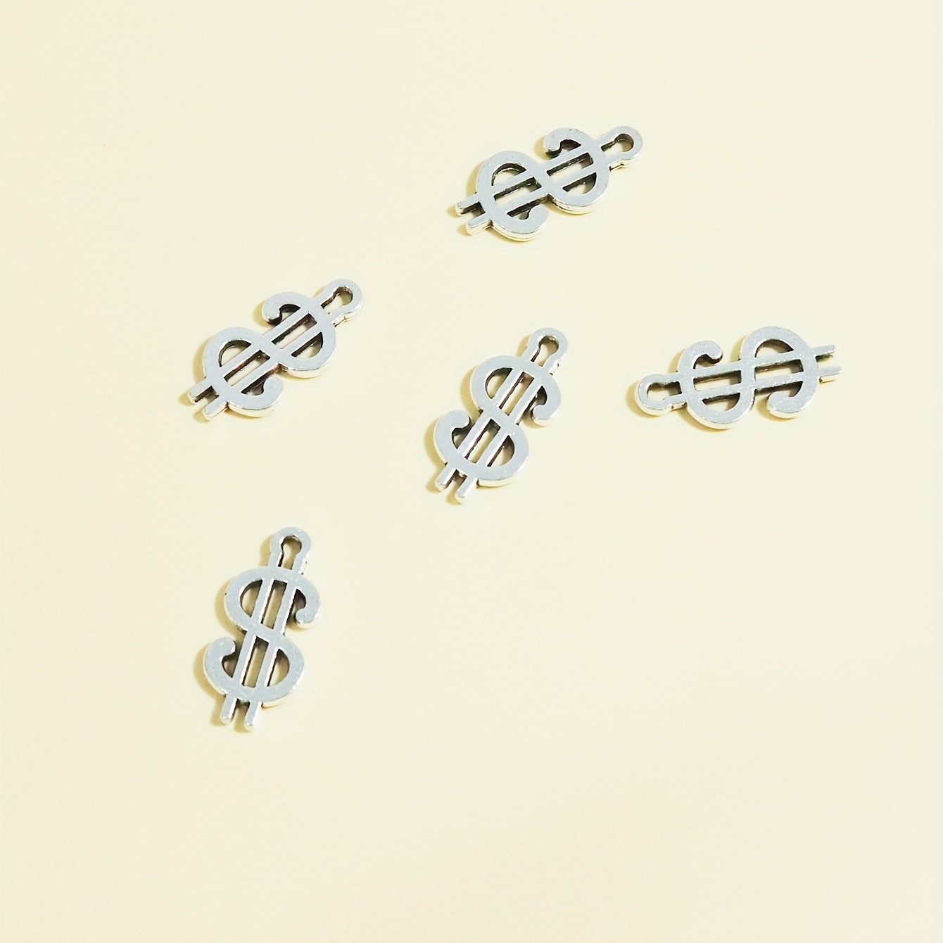 Enhance your DIY jewelry projects with this set of 10 silvery dollar symbol pendants. Perfect for earrings, bracelets, necklaces, and more.