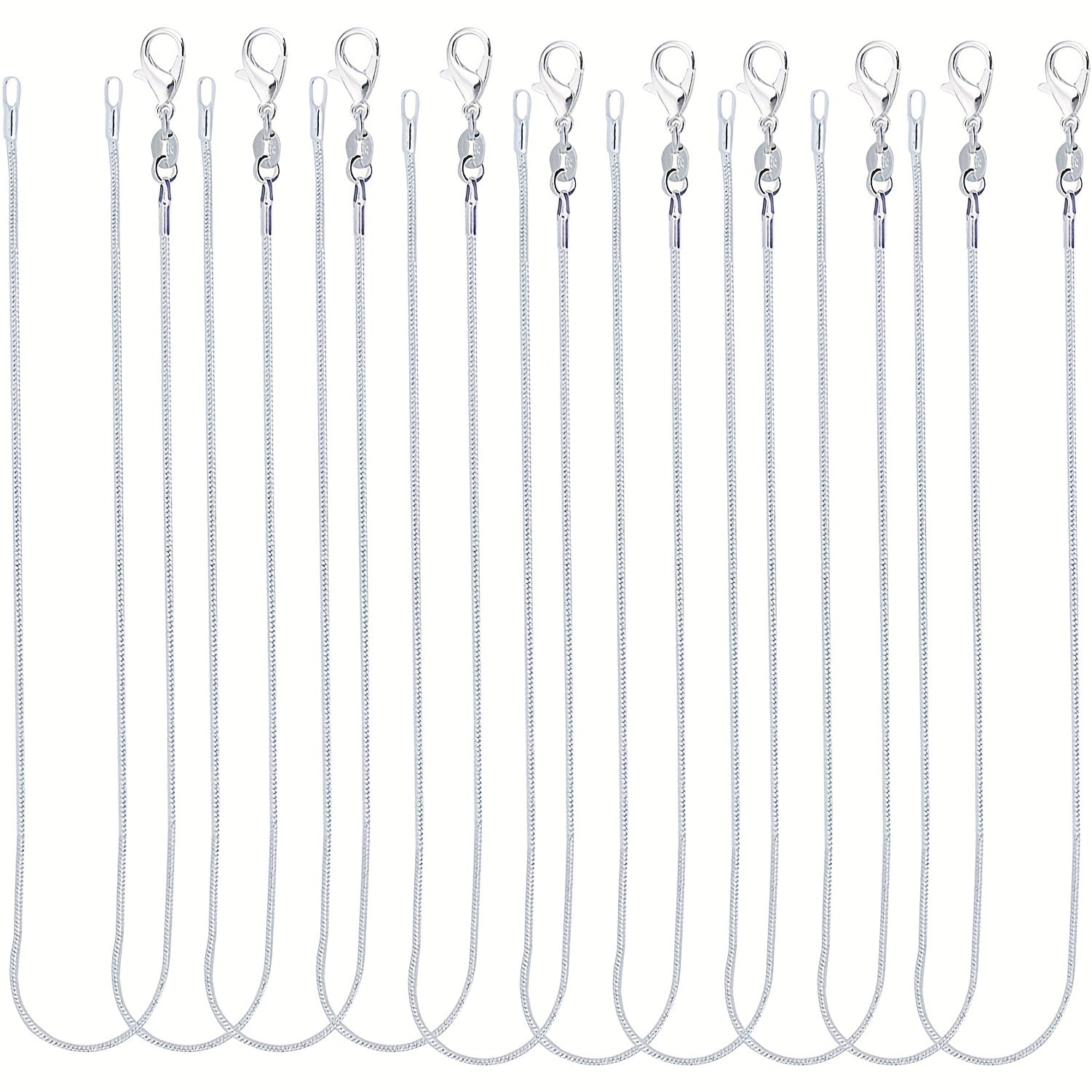 Get 10 silver-plated chains for making DIY snake chain charms necklaces. Each chain comes with a lobster clasp and is available in various lengths.