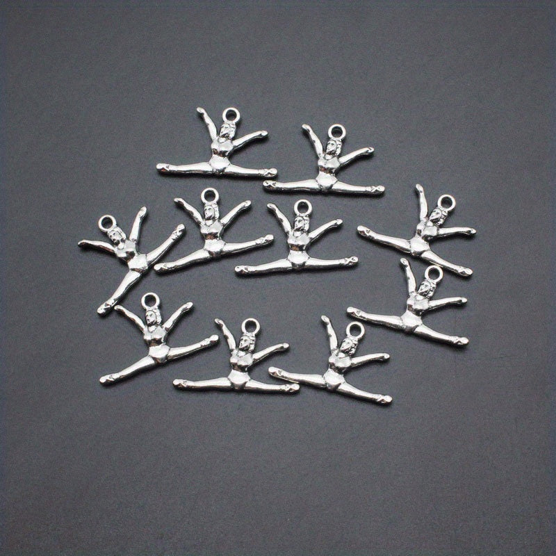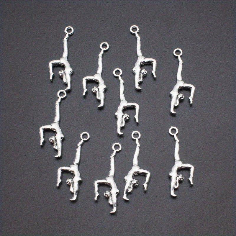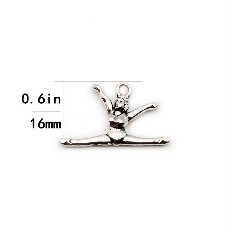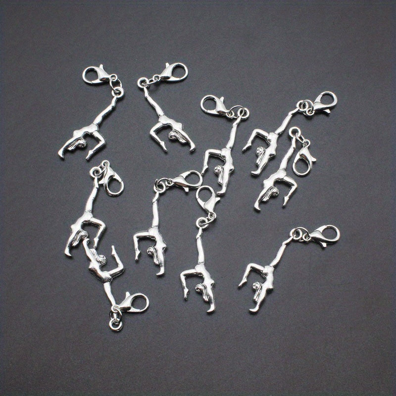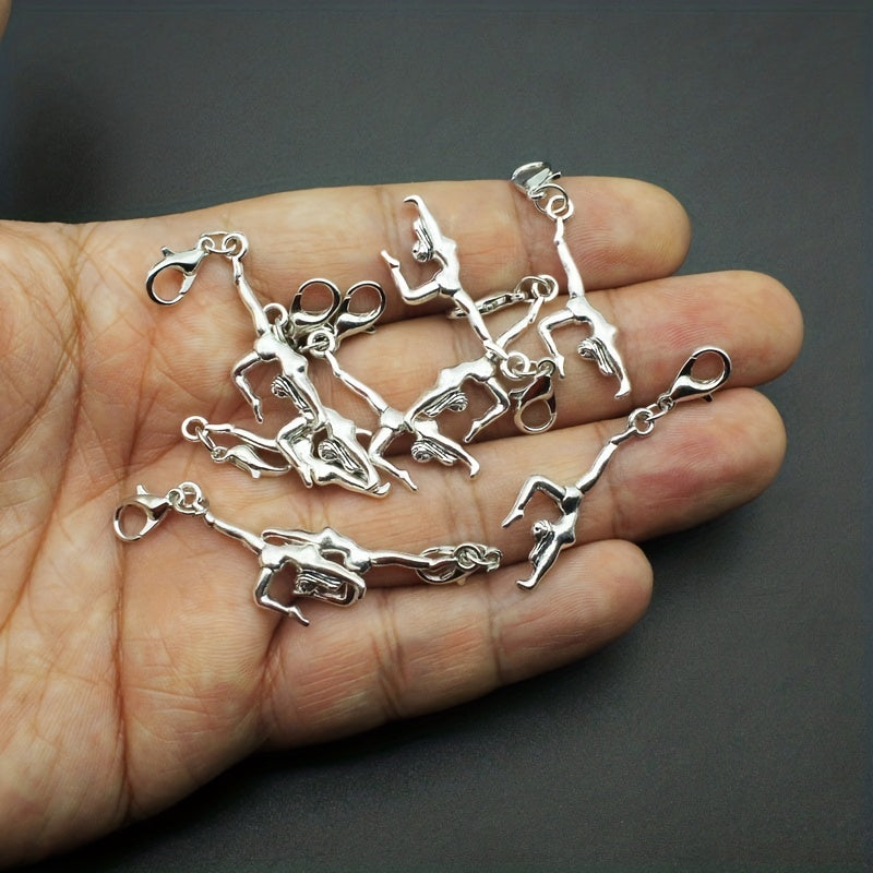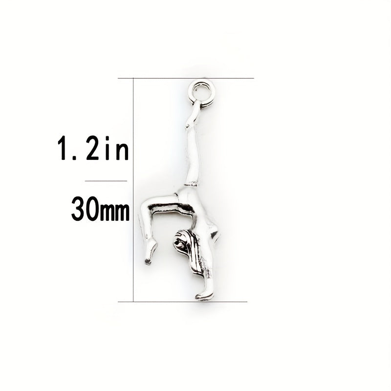 Vintage silvery double sided three-dimensional gymnastics sportsman alloy pendant with lobster clasp for DIY jewelry making.