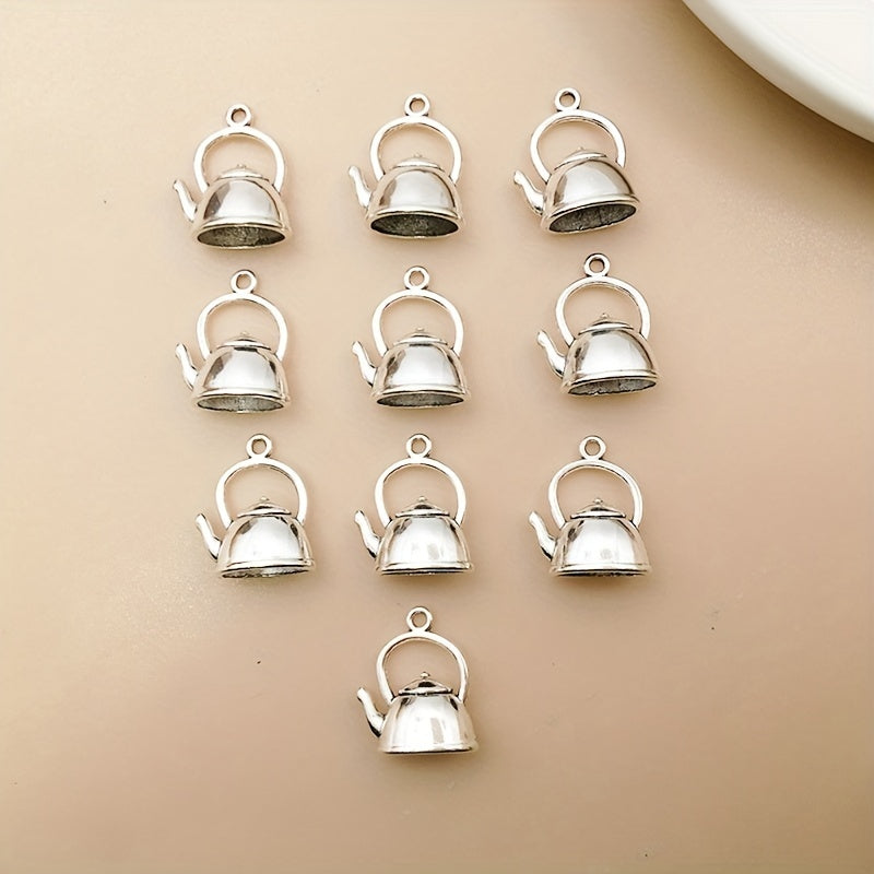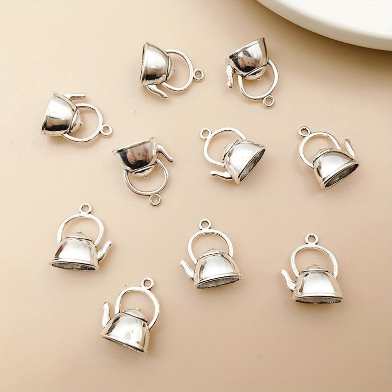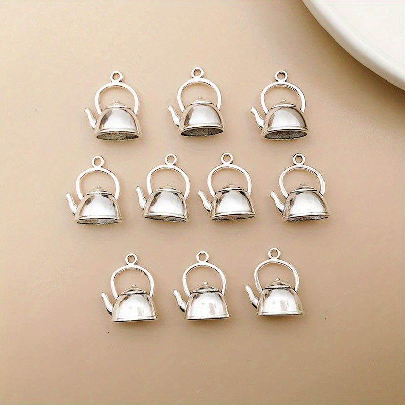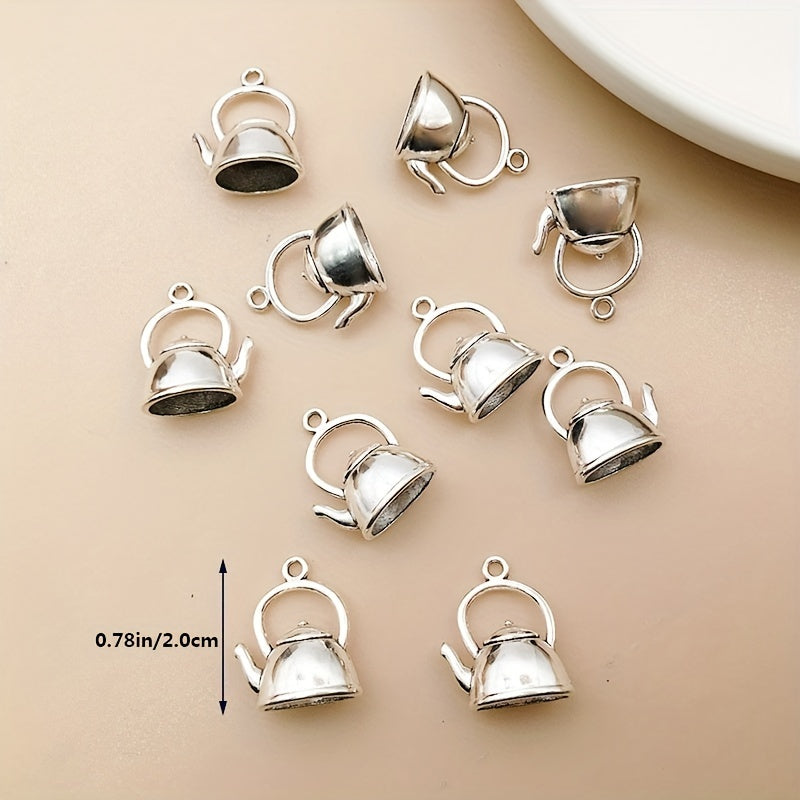 Add a touch of charm to your DIY jewelry projects with these 10pcs silvery teapot charms. Made of high-quality zinc alloy, these antique-style pendants are perfect for necklaces, bracelets, and earrings.