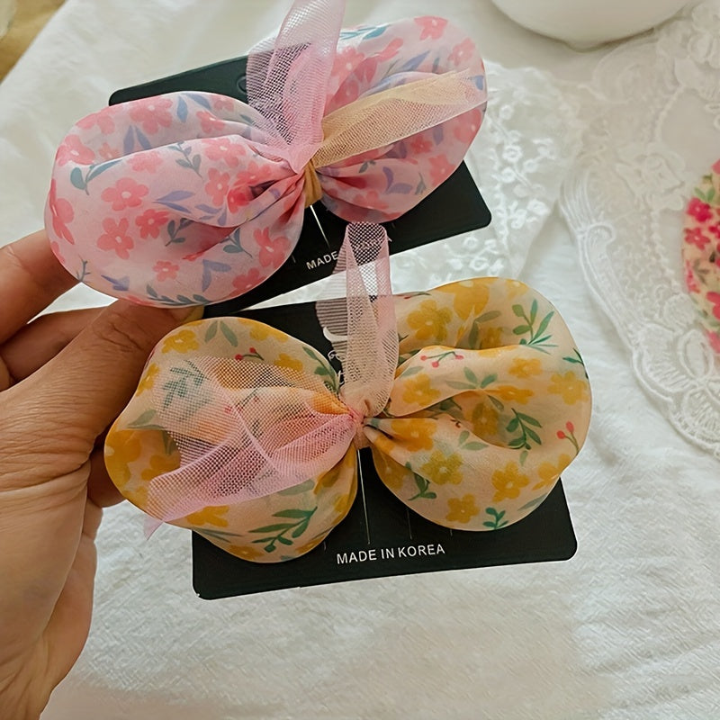 Enhance your hairstyle with these small floral pattern bowknots, perfect for DIY hair clips. Made with mesh material, these accessories add a charming touch to your look.