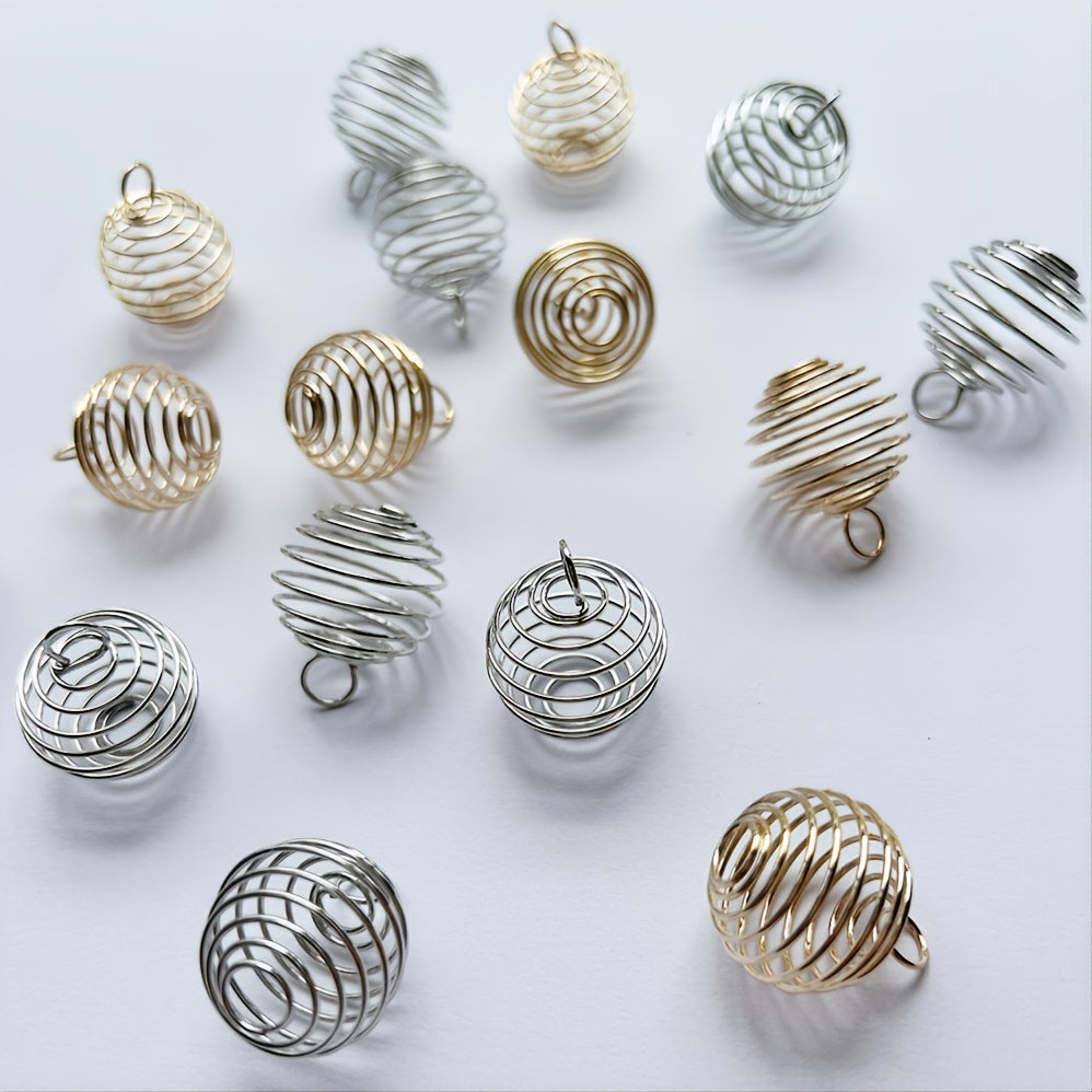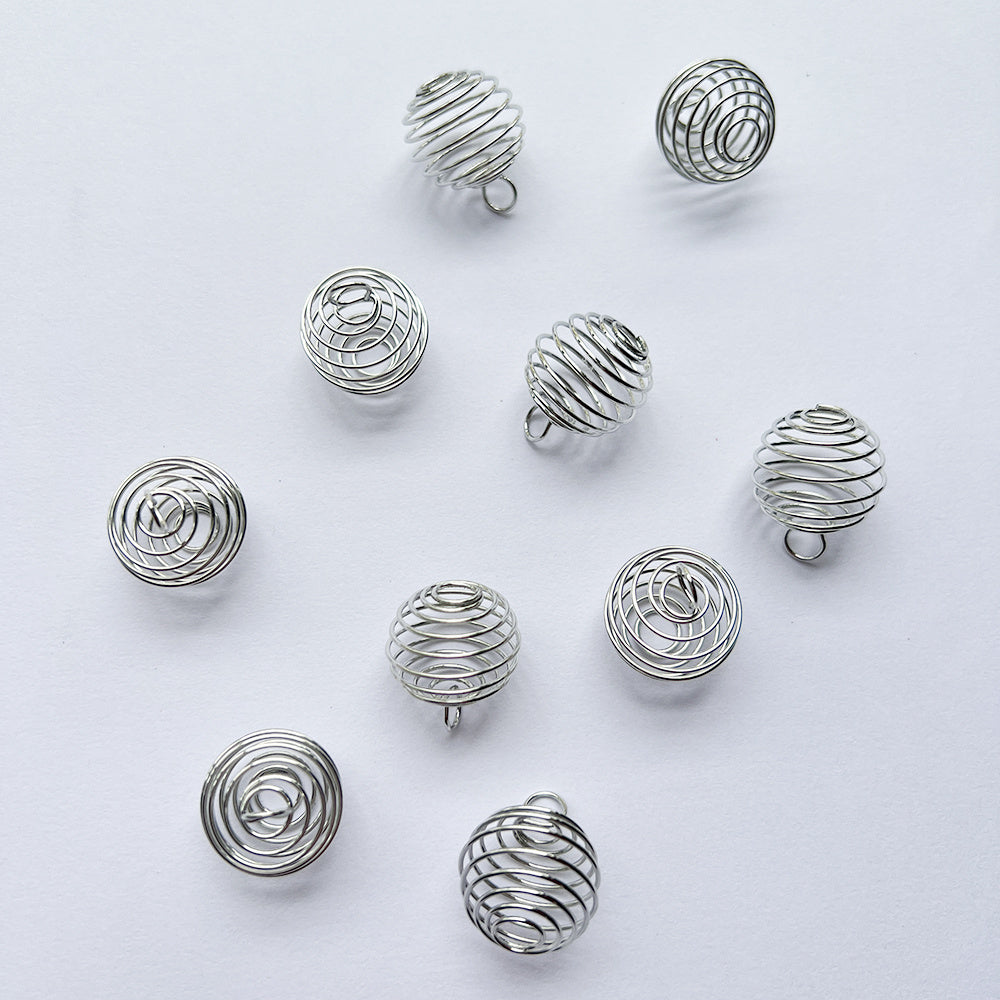 Add a touch of rock style to your accessories with these silver plated spiral bead cage charms. Perfect for earrings, bracelets, necklaces, and more.