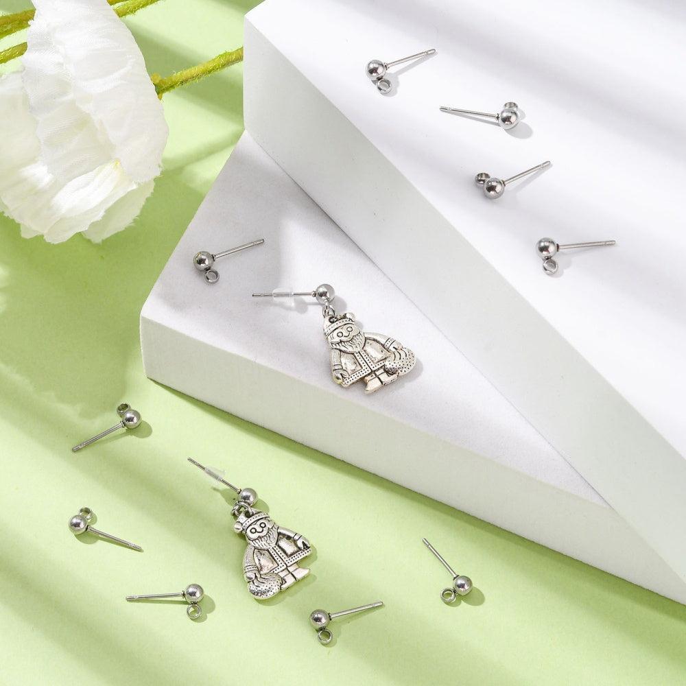 Add a touch of elegance with these stainless steel ball-shaped stud earrings featuring a loop design. Perfect for women and girls.