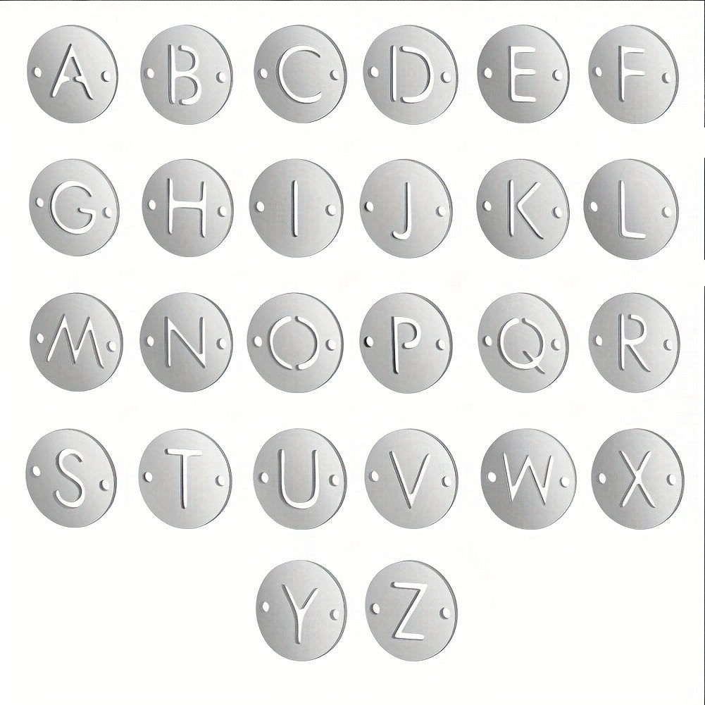 Get this set of 10 stainless steel letter pendants featuring 26 English letters. Perfect for DIY titanium steel bracelets and necklaces.