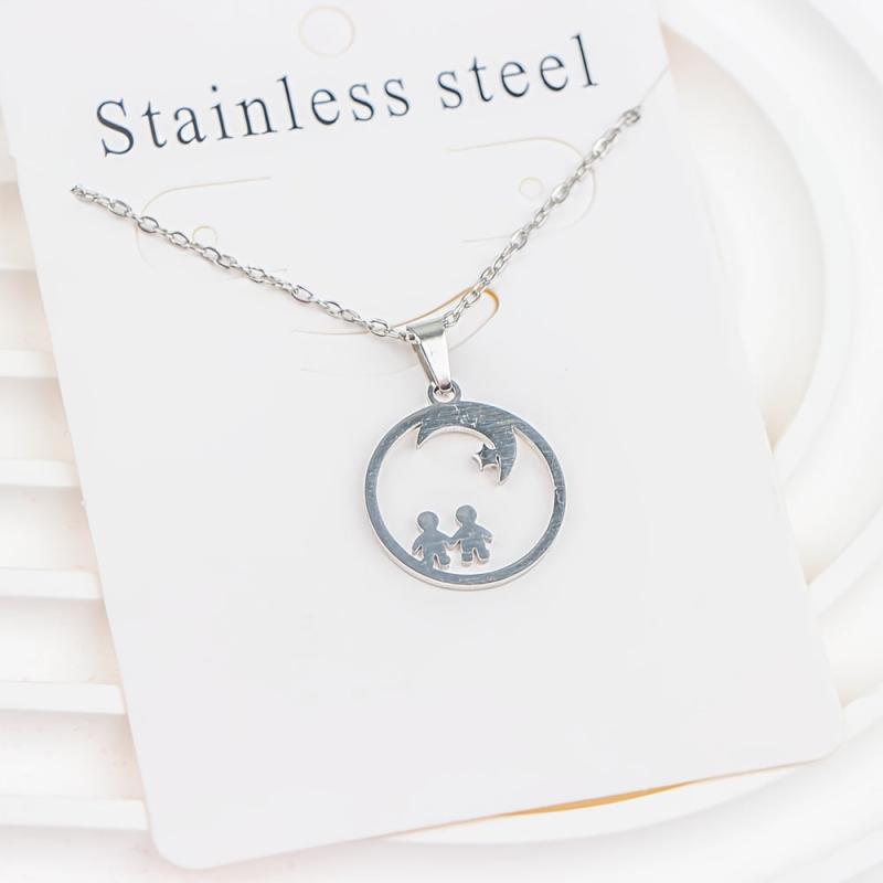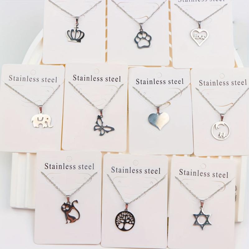 Stylish set of 10 stainless steel pendant necklaces featuring hearts, elephants, and butterfly charms. Made of 316L titanium steel, perfect for casual daily wear and ideal for a vintage Y2K look.