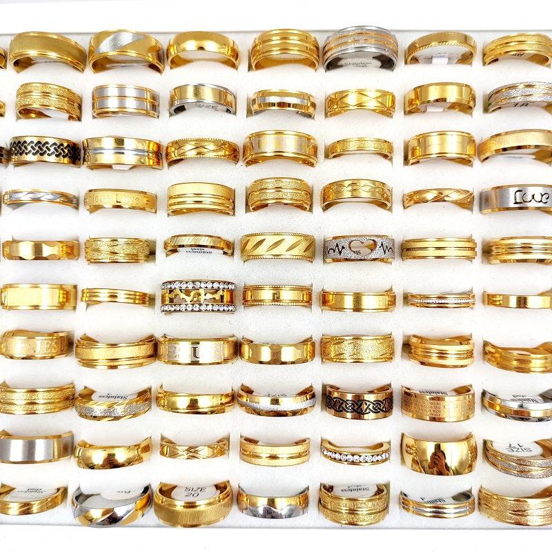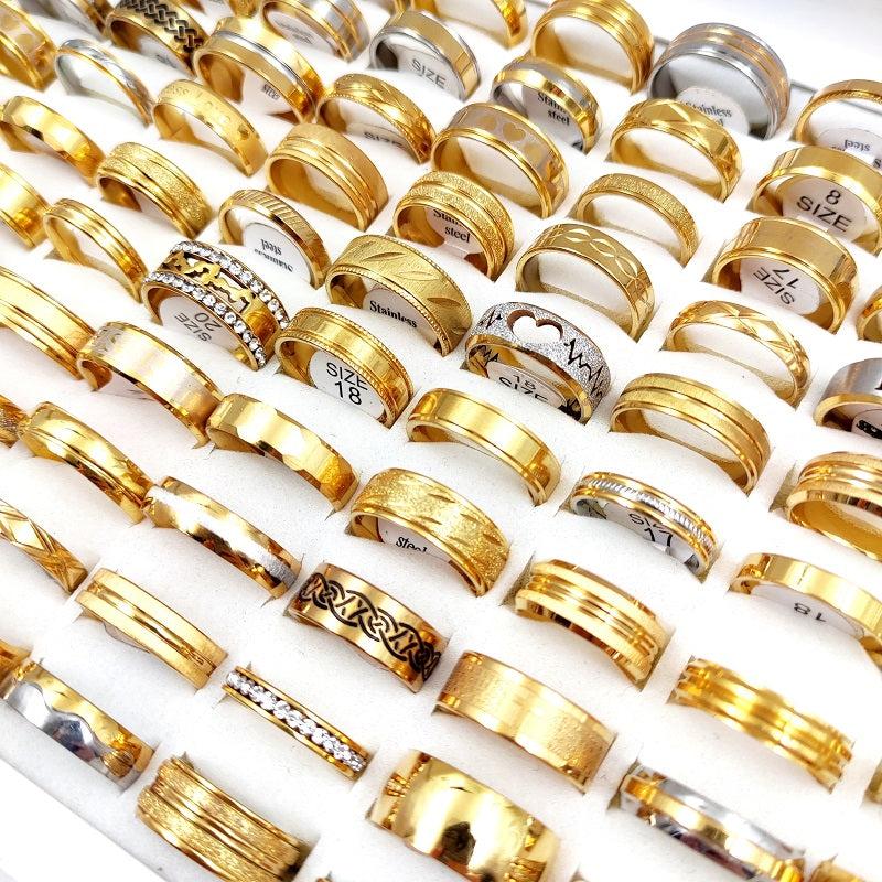 This set includes 10 golden color stainless steel rings suitable for men and women. The perfect gift for anniversaries or special occasions.