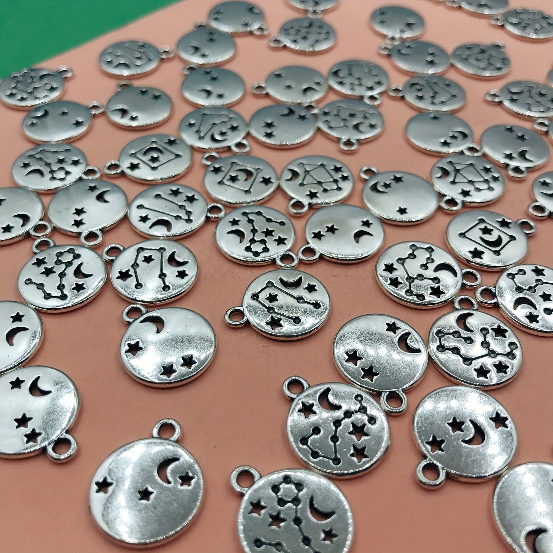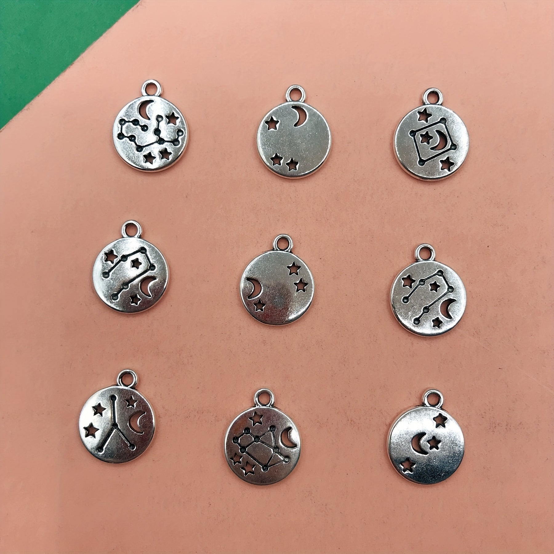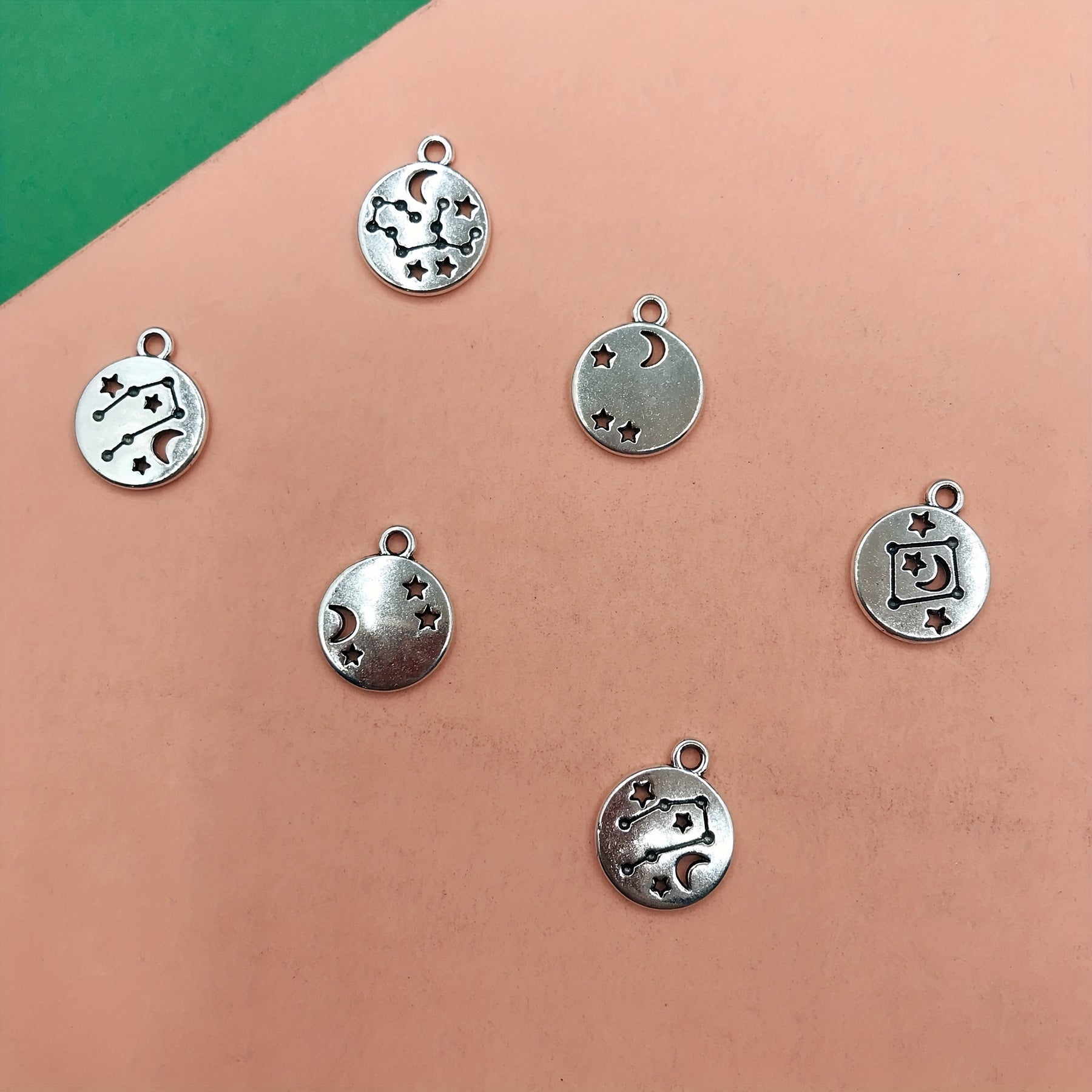 Get creative with these 10pcs star and moon round pendants for making bracelets, necklaces, anklets, earrings, keychains, and more.
