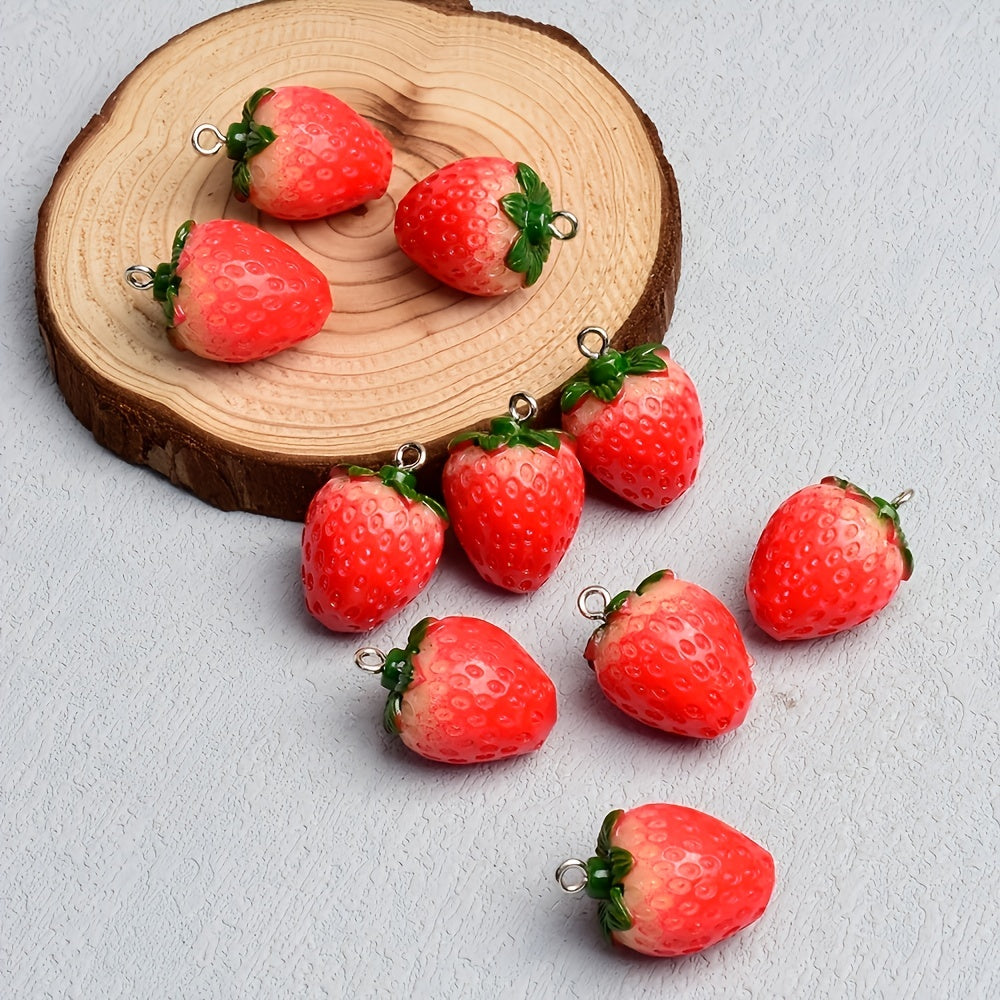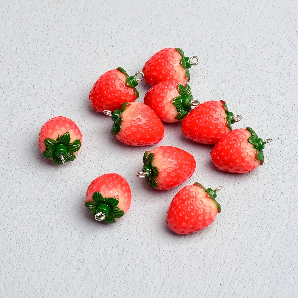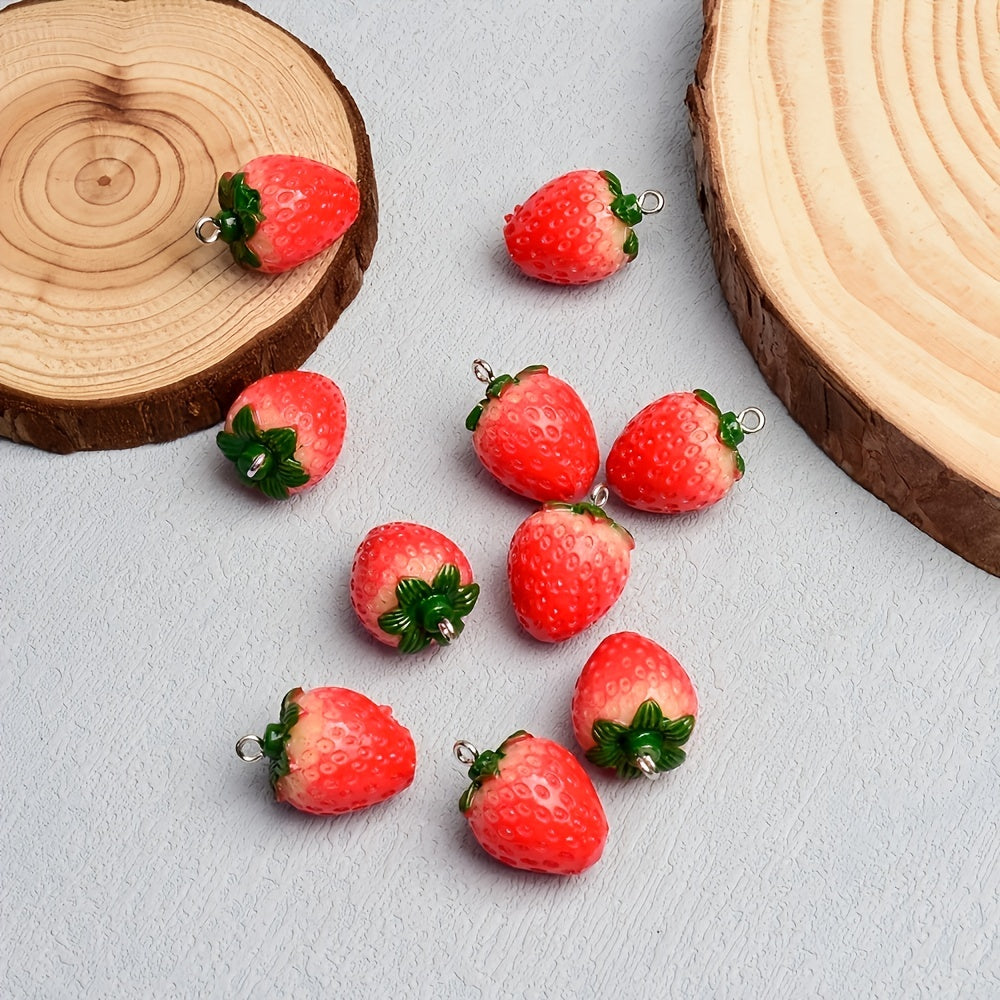 Get creative with this pack of 10 strawberry pendant accessories, perfect for making earrings, necklaces, bracelets, and more. Add a touch of personality to your jewelry designs.