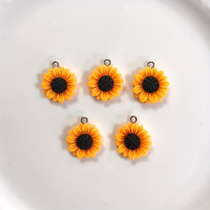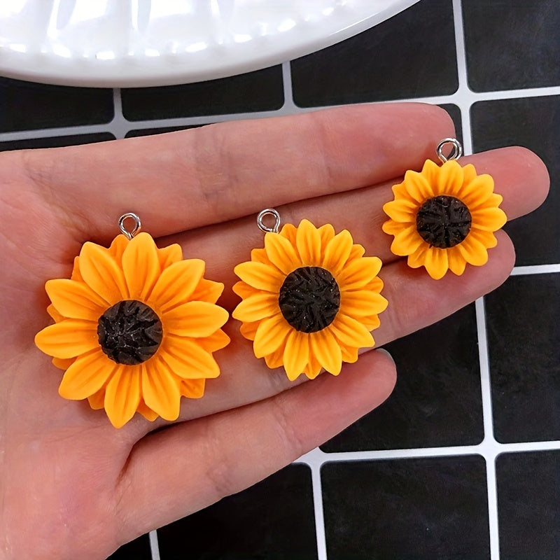 This set includes 10 yellow sunflower acrylic flatback flowers perfect for DIY jewelry making. Use them to create beautiful keychains or necklaces.