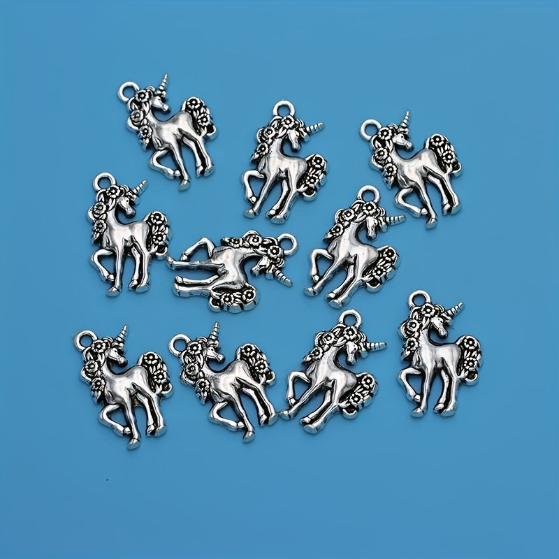 These silvery unicorn alloy pendants are perfect for creating your own earrings, bracelets, necklaces, and other accessories. Each pendant measures 15x23mm.