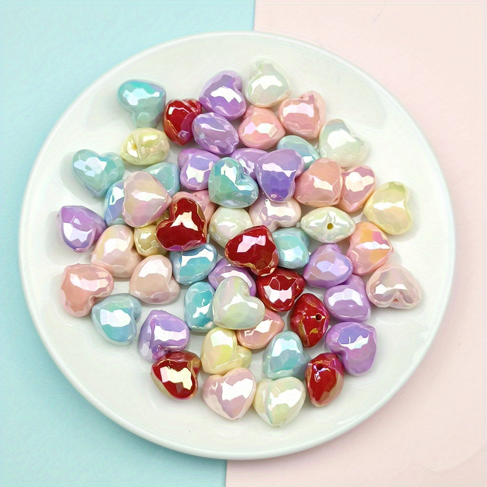 Create stunning mobile phone chains, earrings, bracelets, or necklaces with these electroplating UV luminous starry sky style heart beads. The perfect material for your crafting projects.