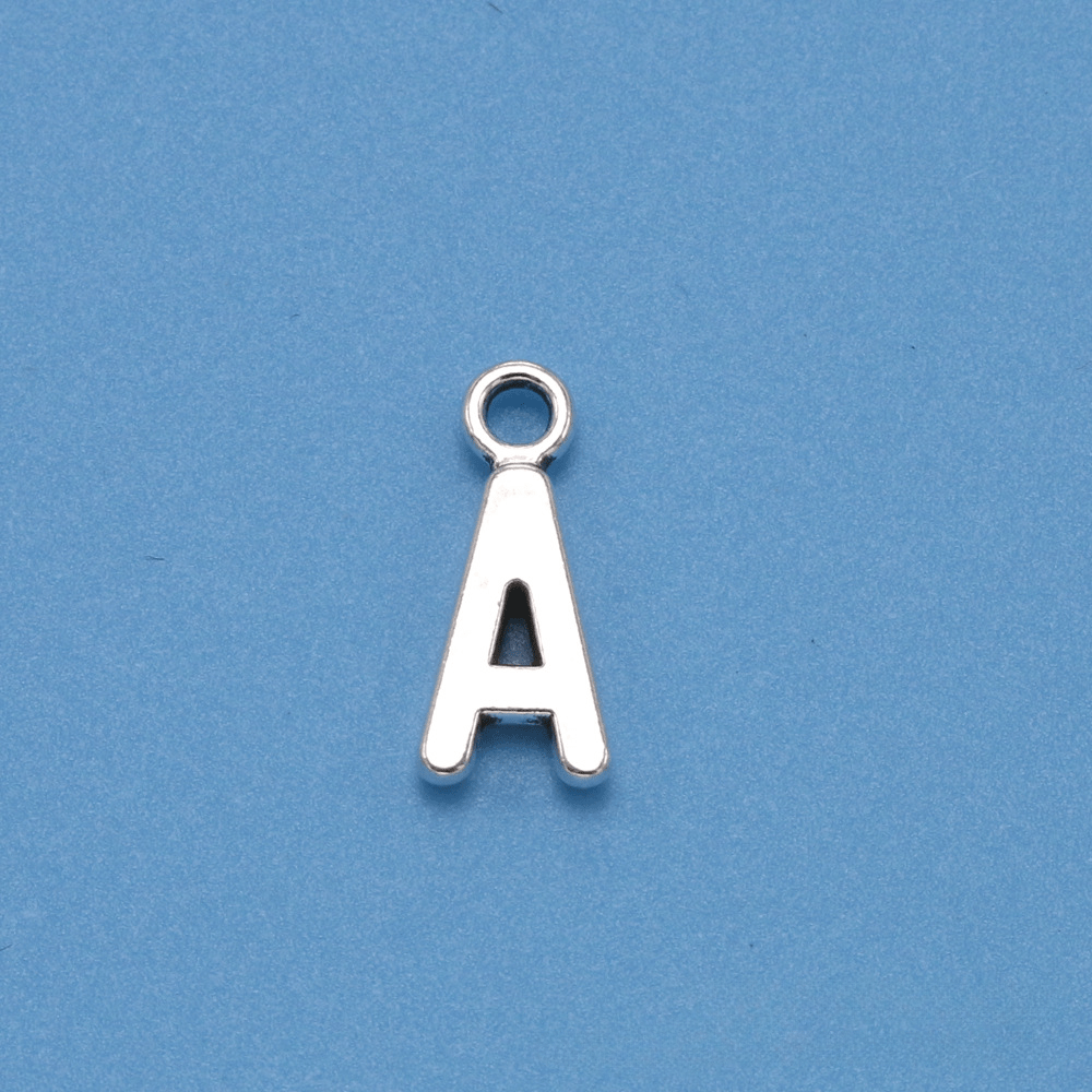 Add a touch of classic style to your DIY jewelry with these vintage silvery alloy English alphabet pendants.