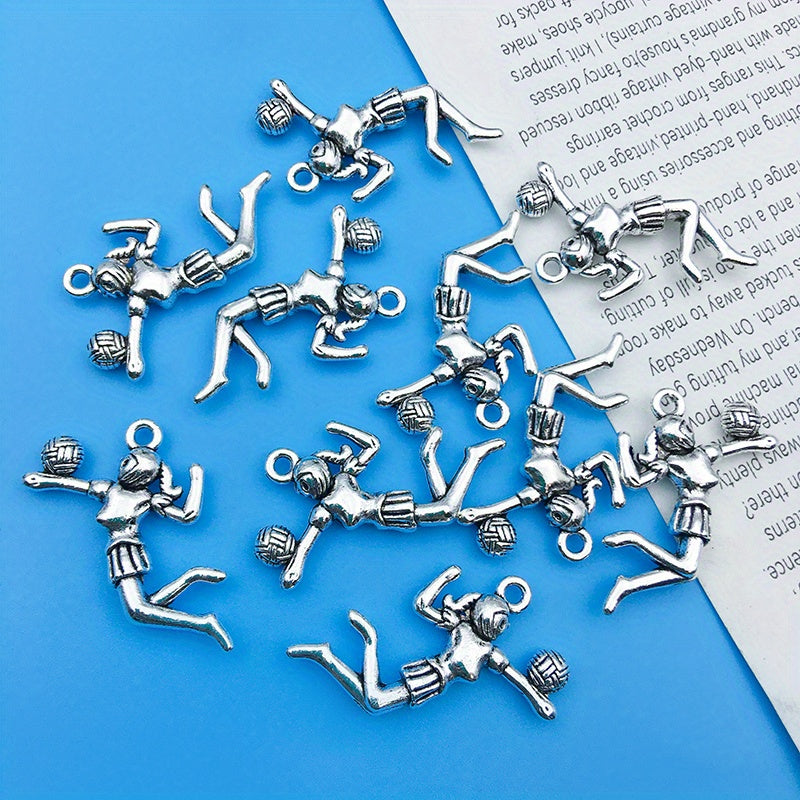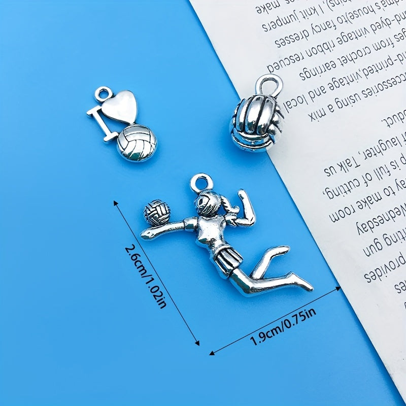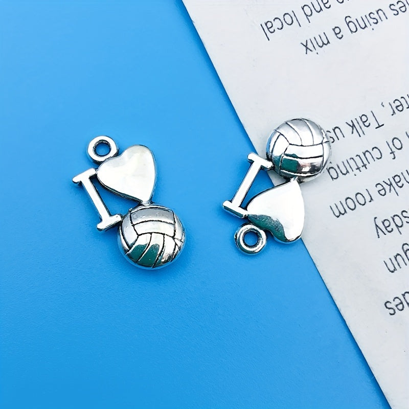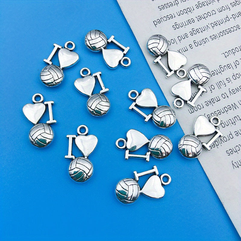 Enhance your jewelry making projects with this set of 10 zinc alloy antique silver sports volleyball pendants. Ideal for necklaces, bracelets, and earrings.