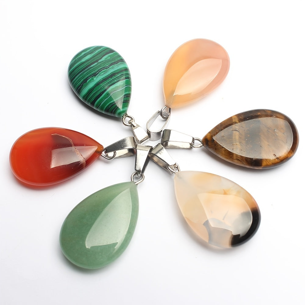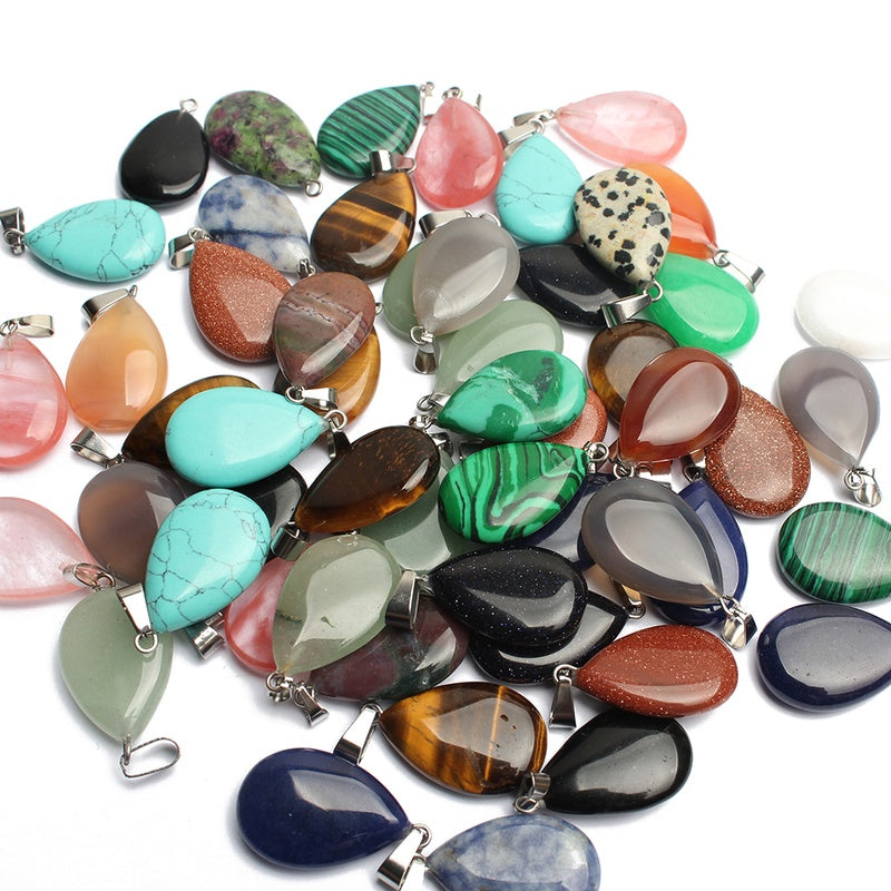 Enhance your jewelry collection with these natural water drop stone pendants. Perfect for necklace making, each pendant is a random size between 24mm and 16mm.