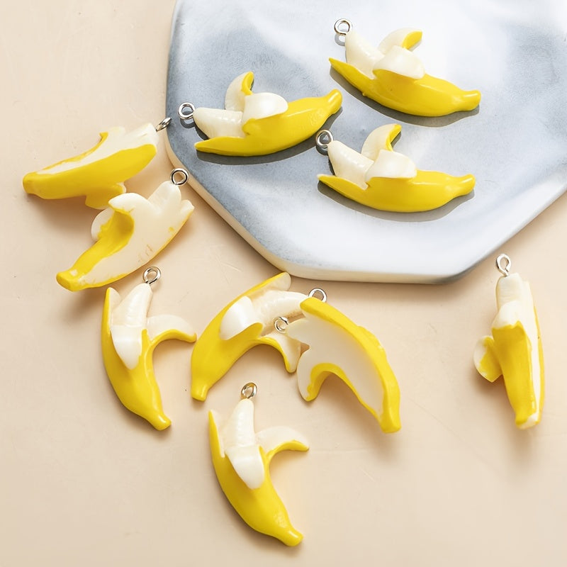 Add a fun touch to your DIY jewelry projects with these yellow resin banana charms. Perfect for earrings or necklace designs, these artificial jewelry findings are sure to bring a pop of color to your creations.