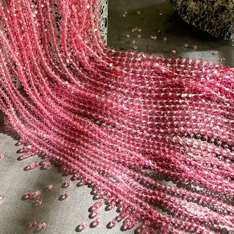 Enhance your jewelry making projects with this set of 110 faceted transparent light pink crystal beads. Perfect for creating beautiful bracelets, necklaces, and earrings.