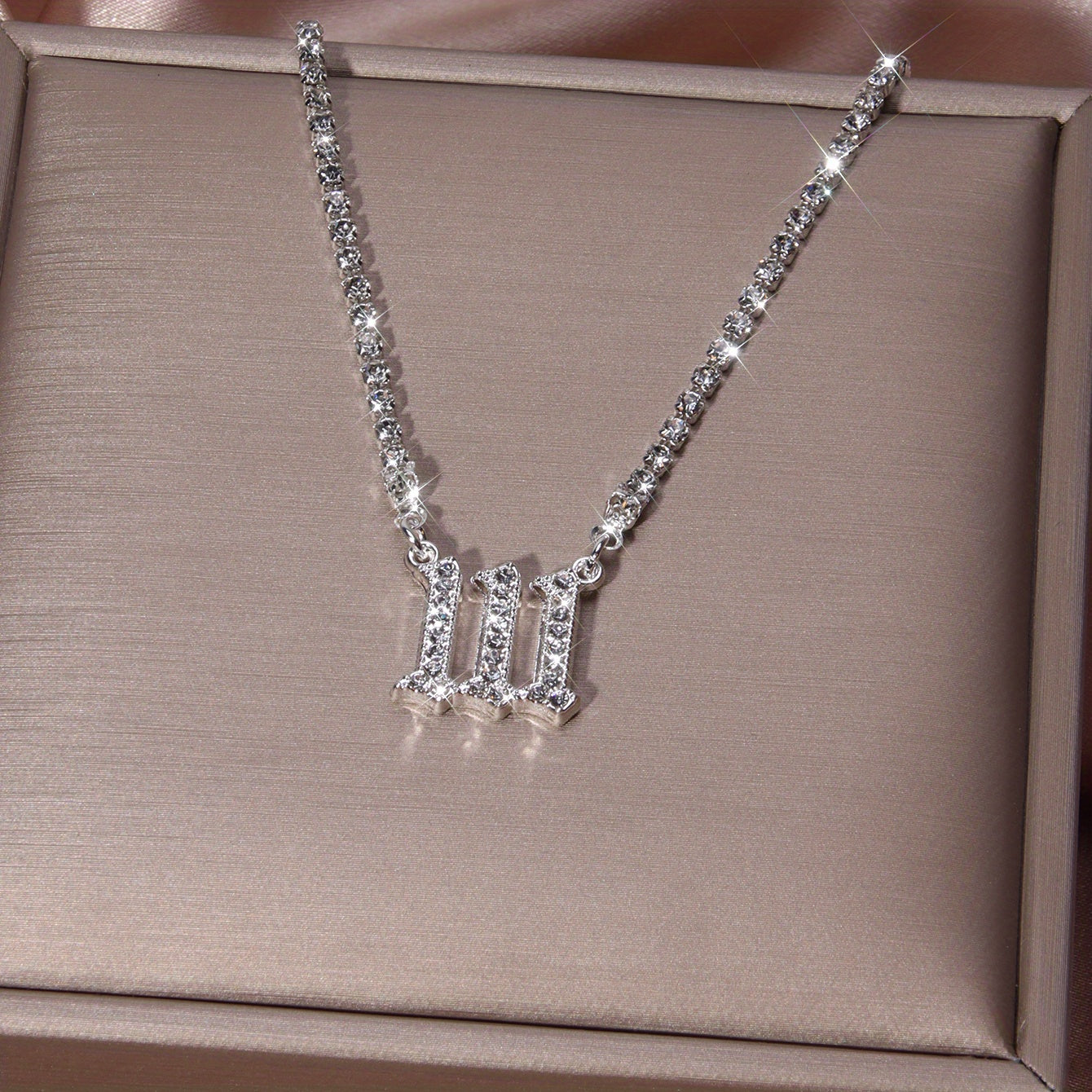 This stunning pendant necklace features the number 111 with full rhinestones. The necklace is silver plated and makes a perfect gift for yourself or a loved one.