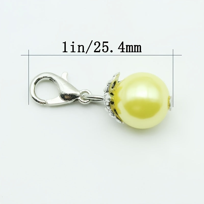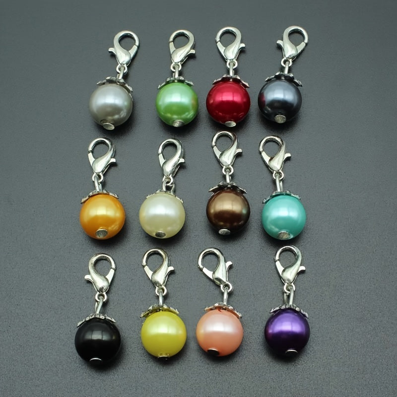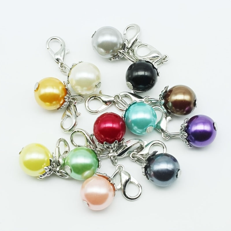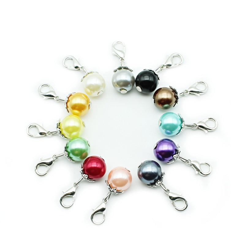 This pack of 12 plastic pearl lobster clasp pendants includes 12 different colors, making it a versatile accessory for hanging on necklaces or bracelets. These charms are perfect for adding a touch of elegance to your jewelry designs.
