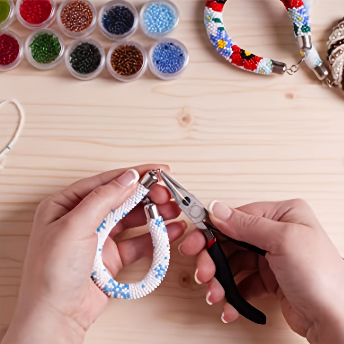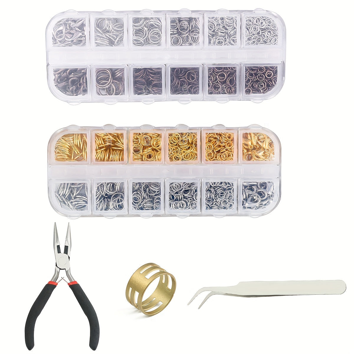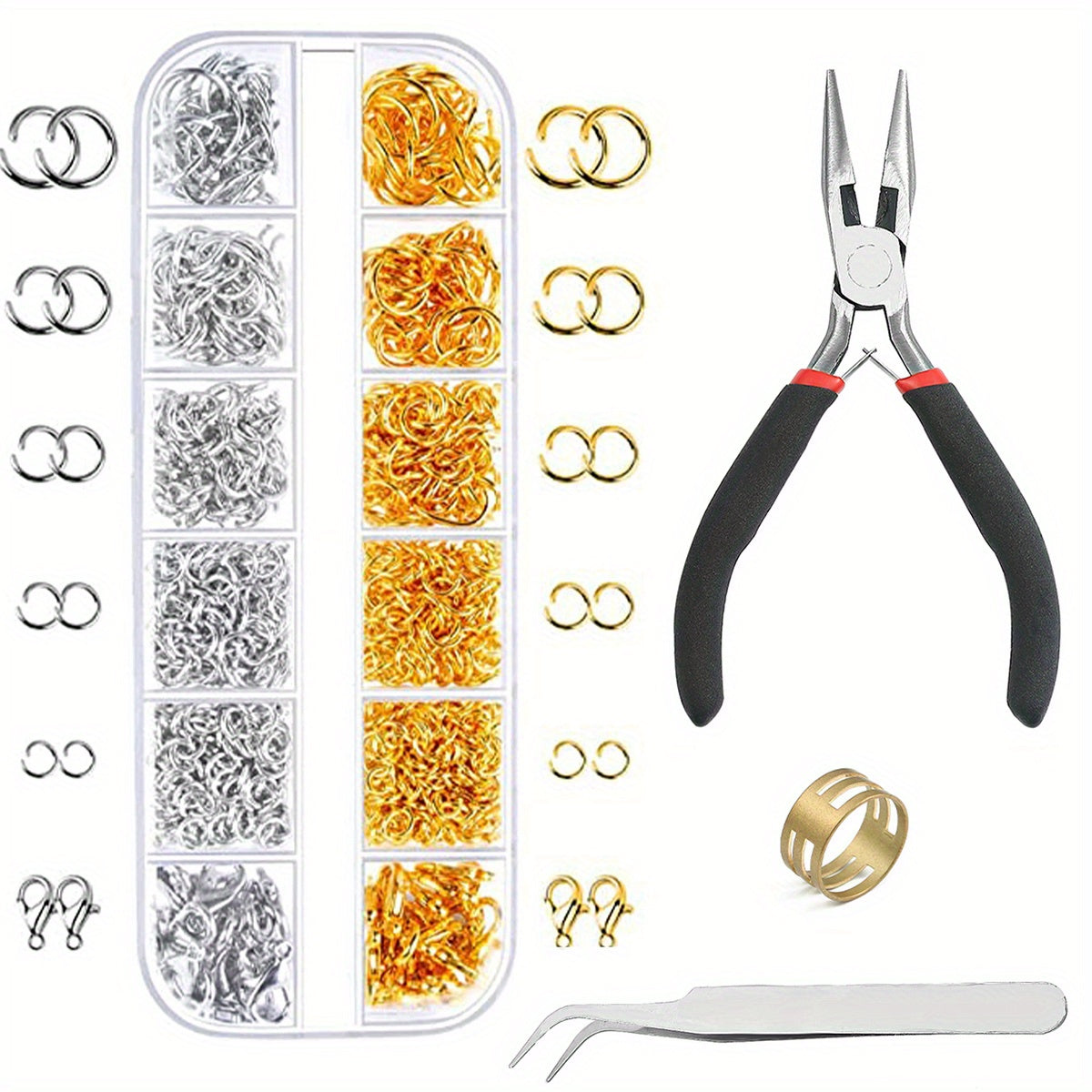 Get this jewelry making kit with 12 grids, boxed lobster clasp, jump rings, pliers, tweezers, and jump ring opener. Perfect for creating your own unique pieces!
