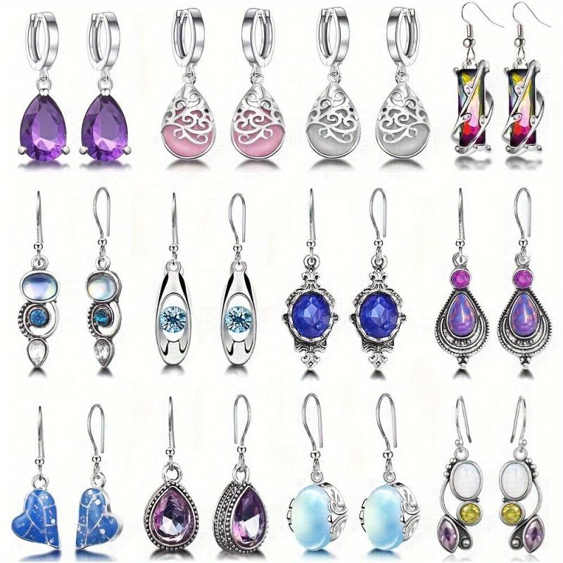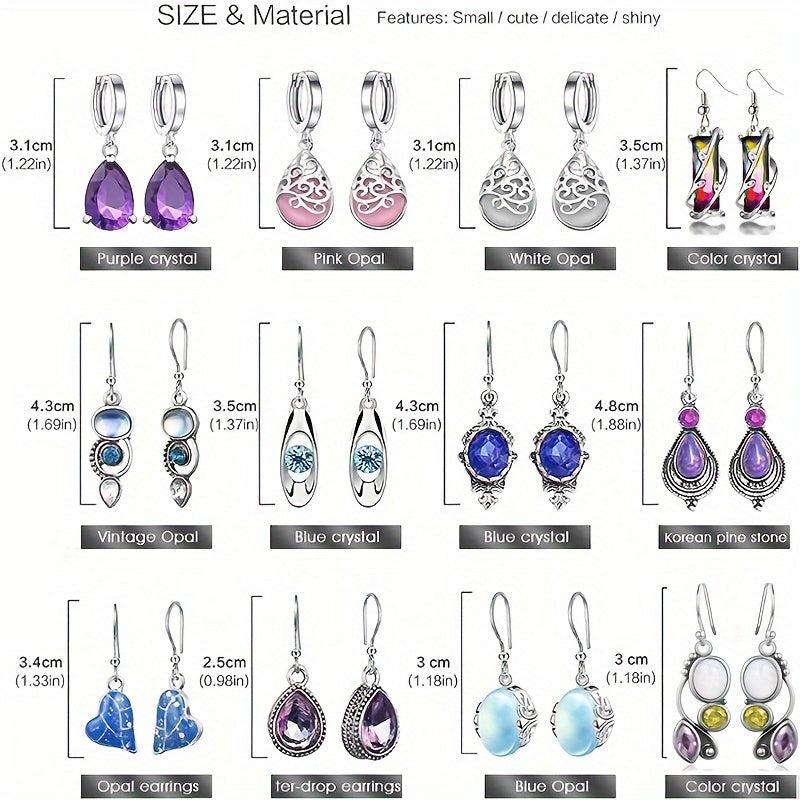 Enhance your look with this set of 12 pairs of colorful artificial crystal dangle earrings. Made from zinc alloy, these Bohemian-style earrings are delicate and make a perfect gift for any female.
