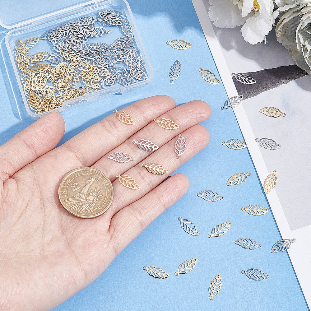 Enhance your DIY projects with these stainless steel leaf pattern pendants. Perfect for creating unique accessories.