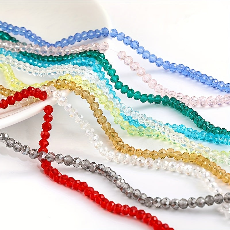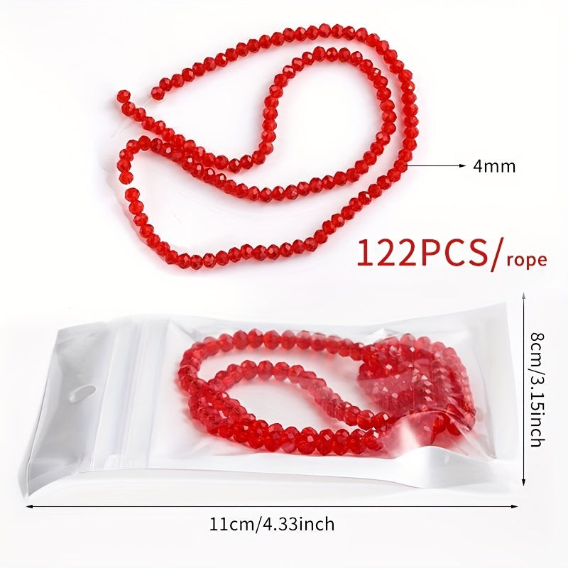 This pack contains 122 pieces of 4mm faceted crystal flat beads, ideal for creating earrings, bracelets, necklaces, and other accessories.