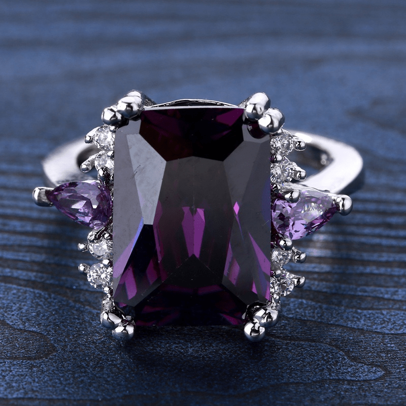Enhance your style with this stunning 12CT amethyst wedding ring featuring zircon decor. Perfect for weddings and parties.