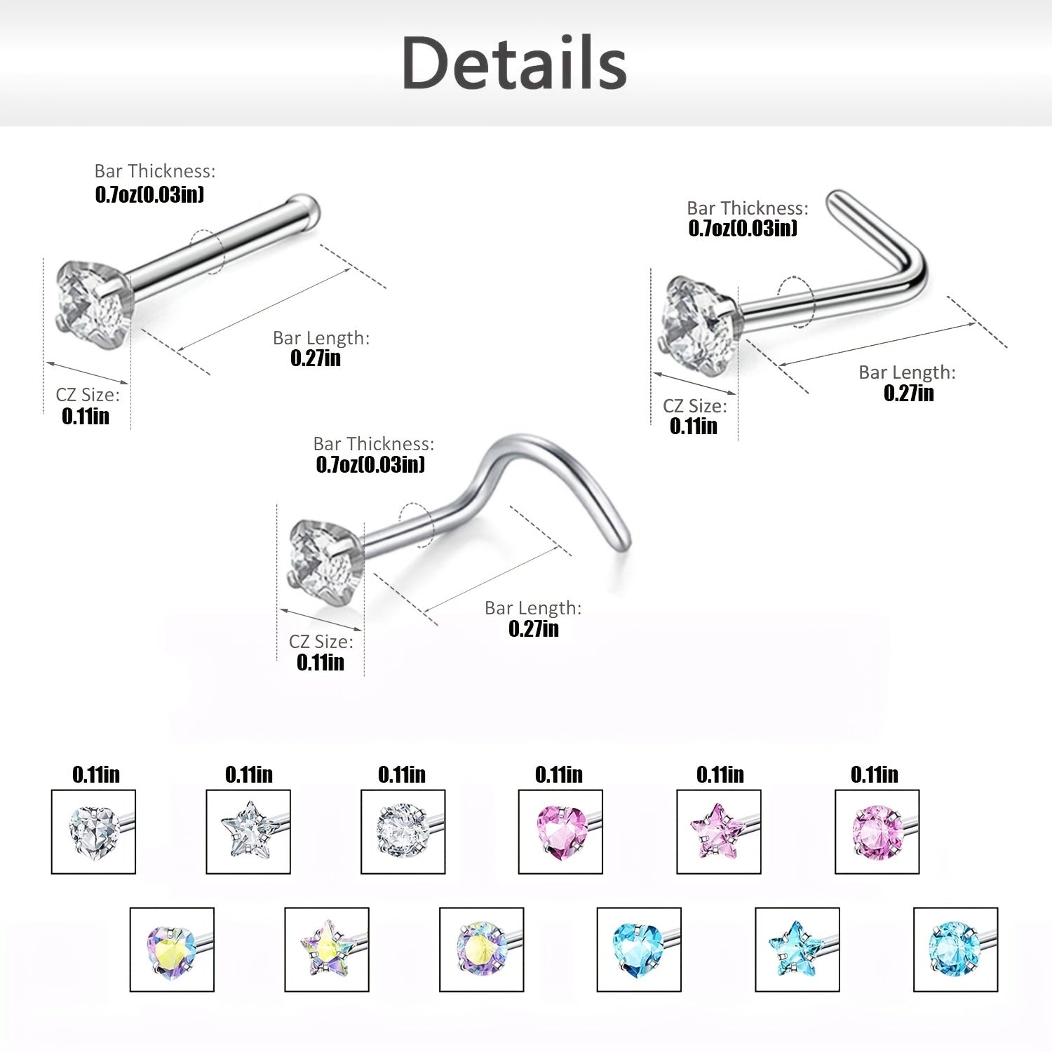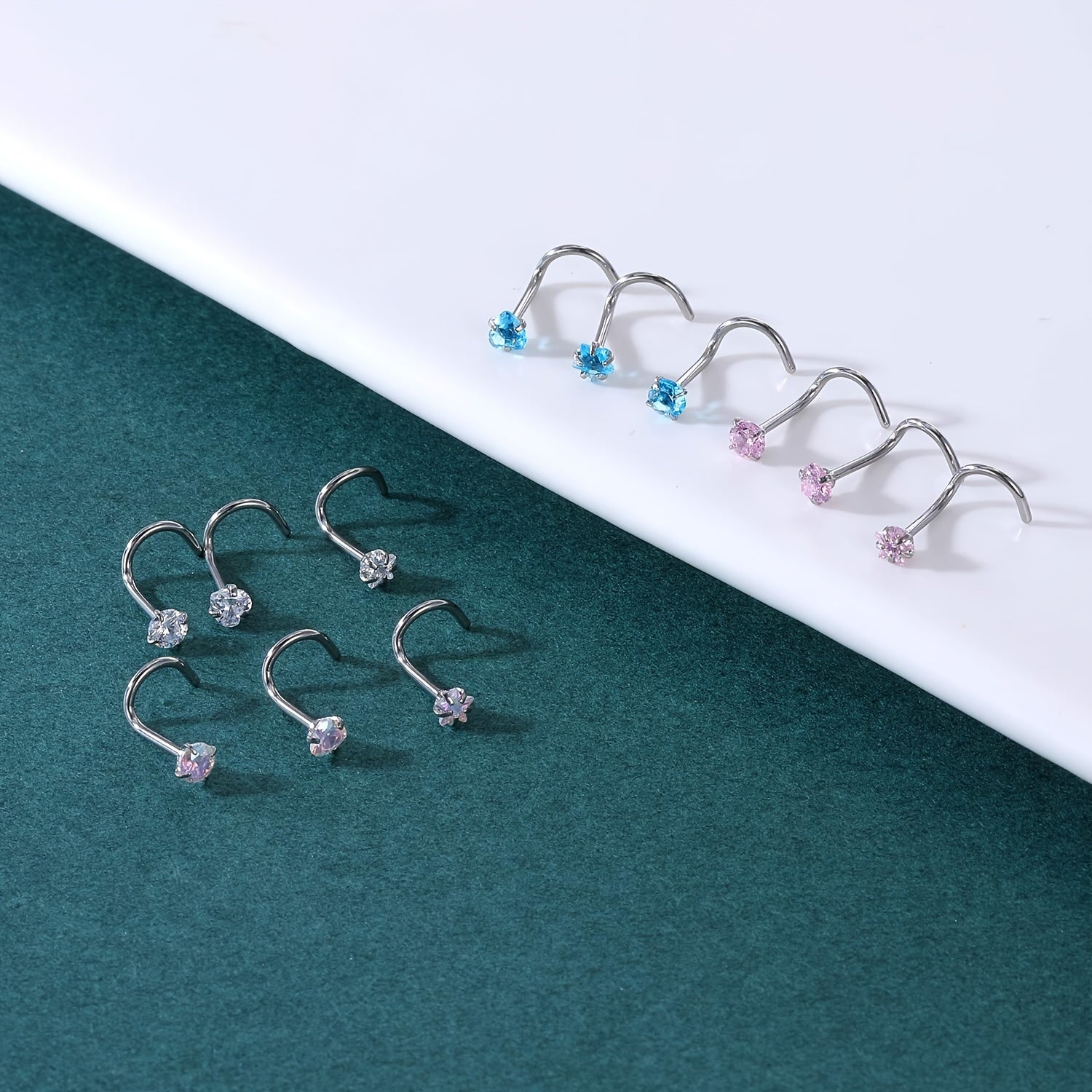 This set includes 12 nose stud rings made of surgical stainless steel. Perfect for nose piercings, comfortable and durable.