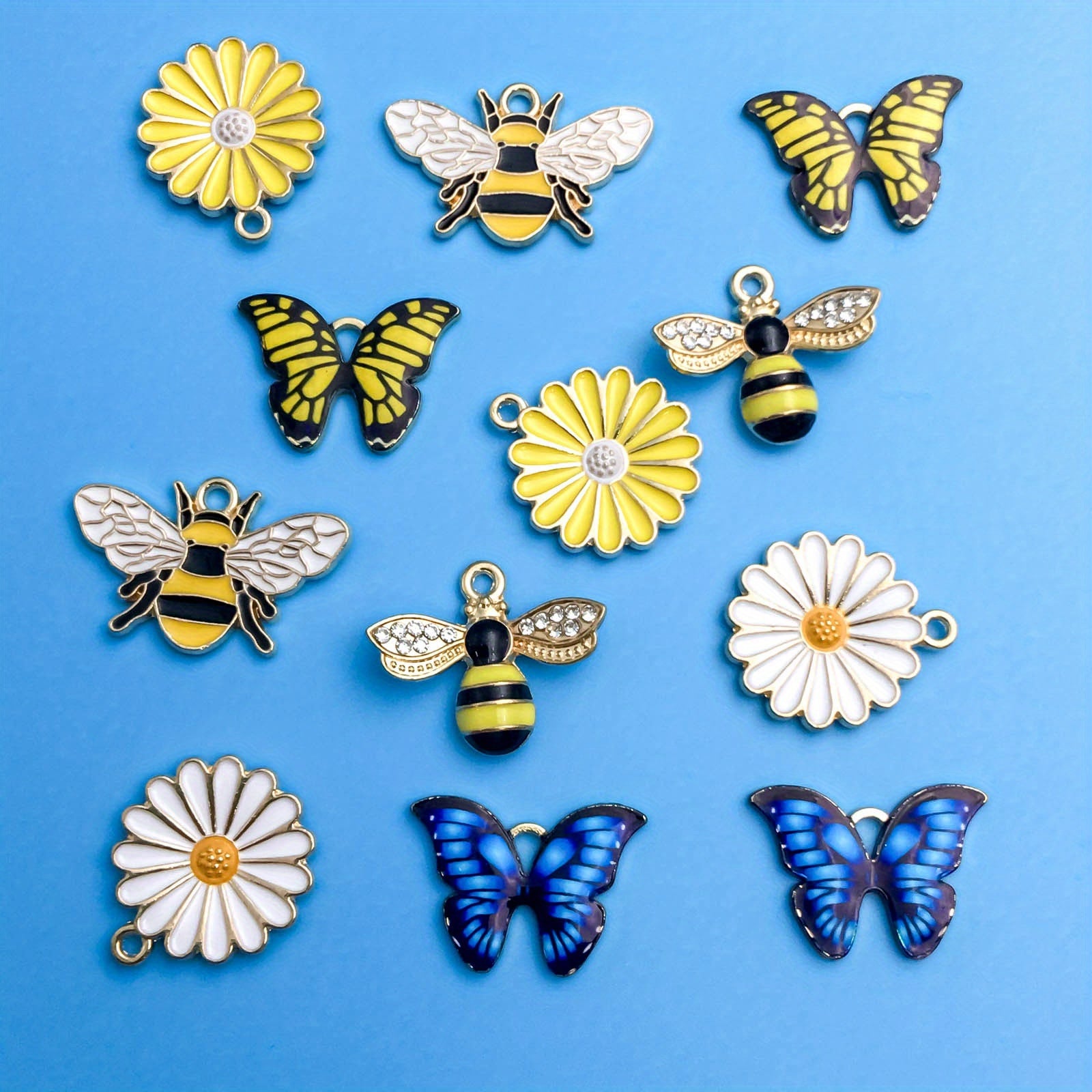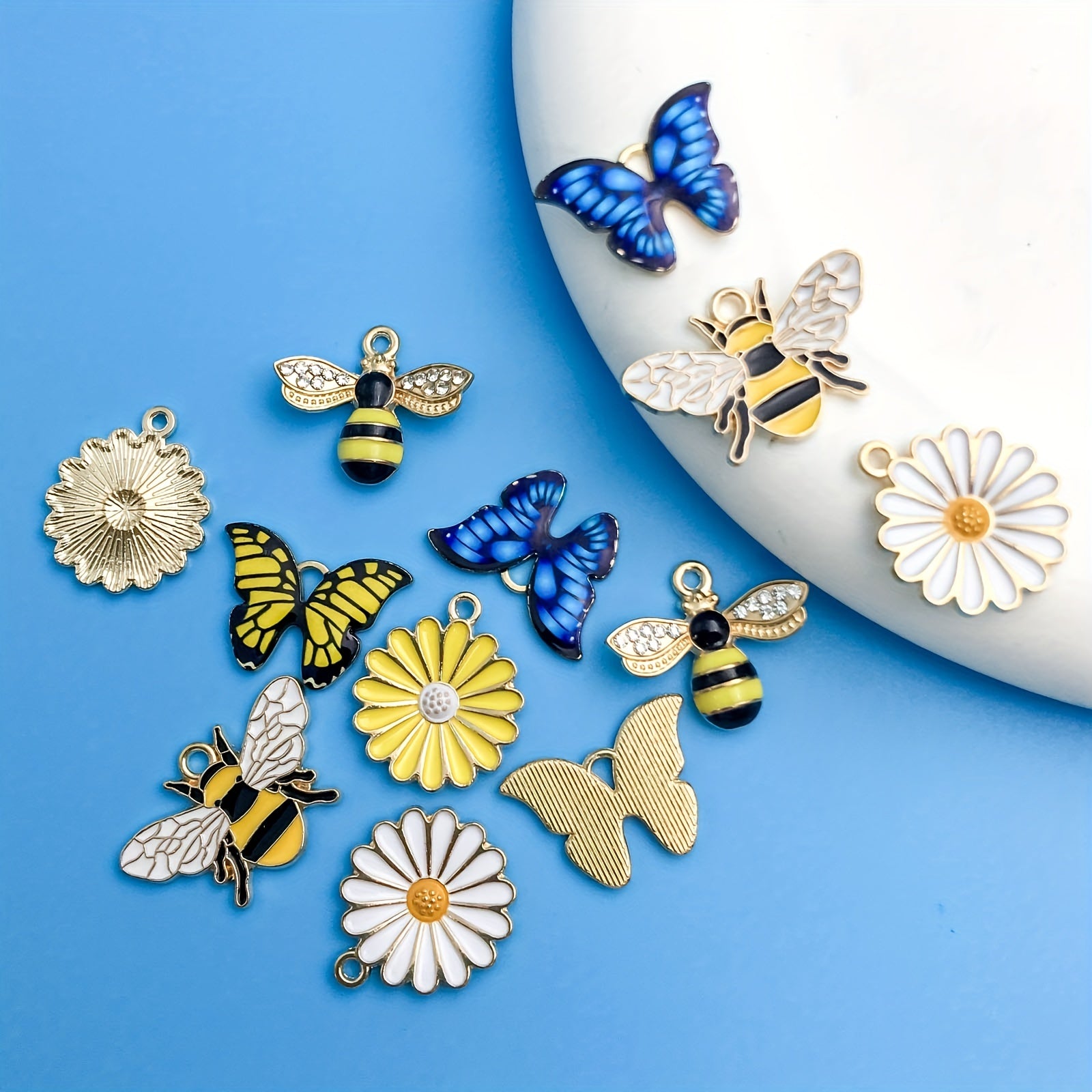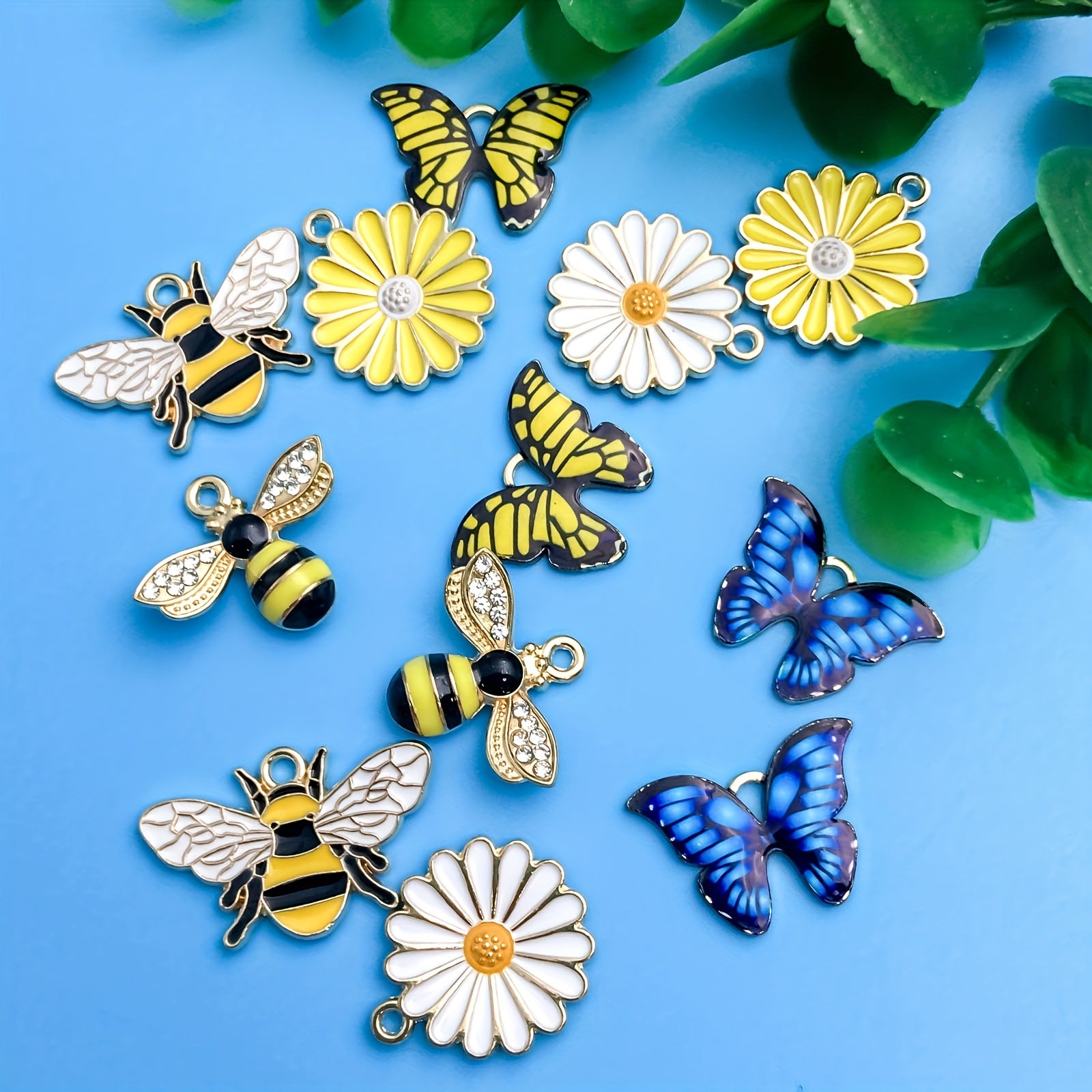 This pack of 12 small pendants features bee, butterfly, and flower shapes. Perfect for DIY necklace, bracelet, and other jewelry projects.