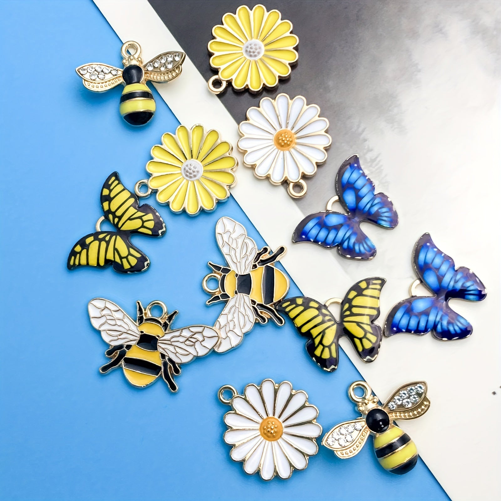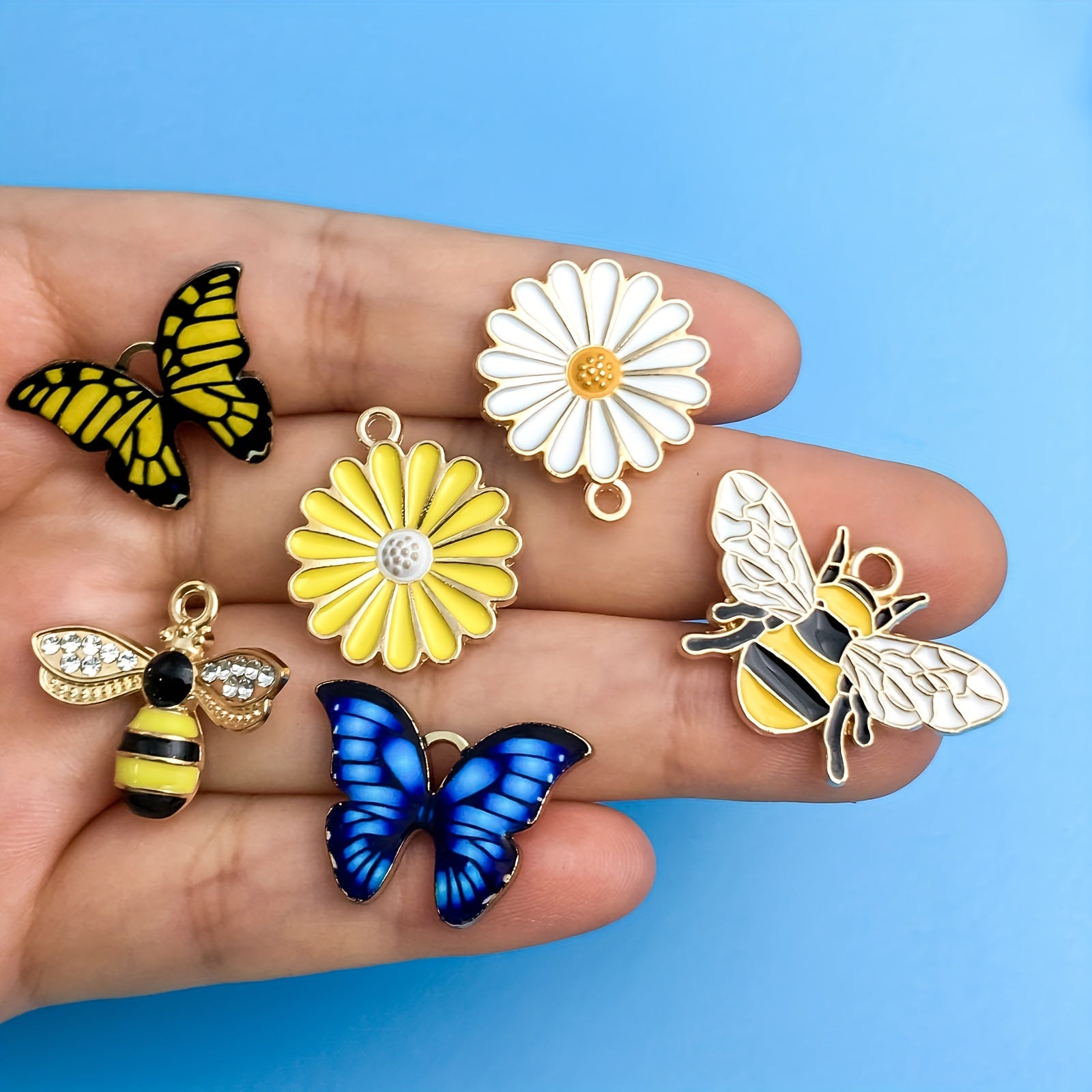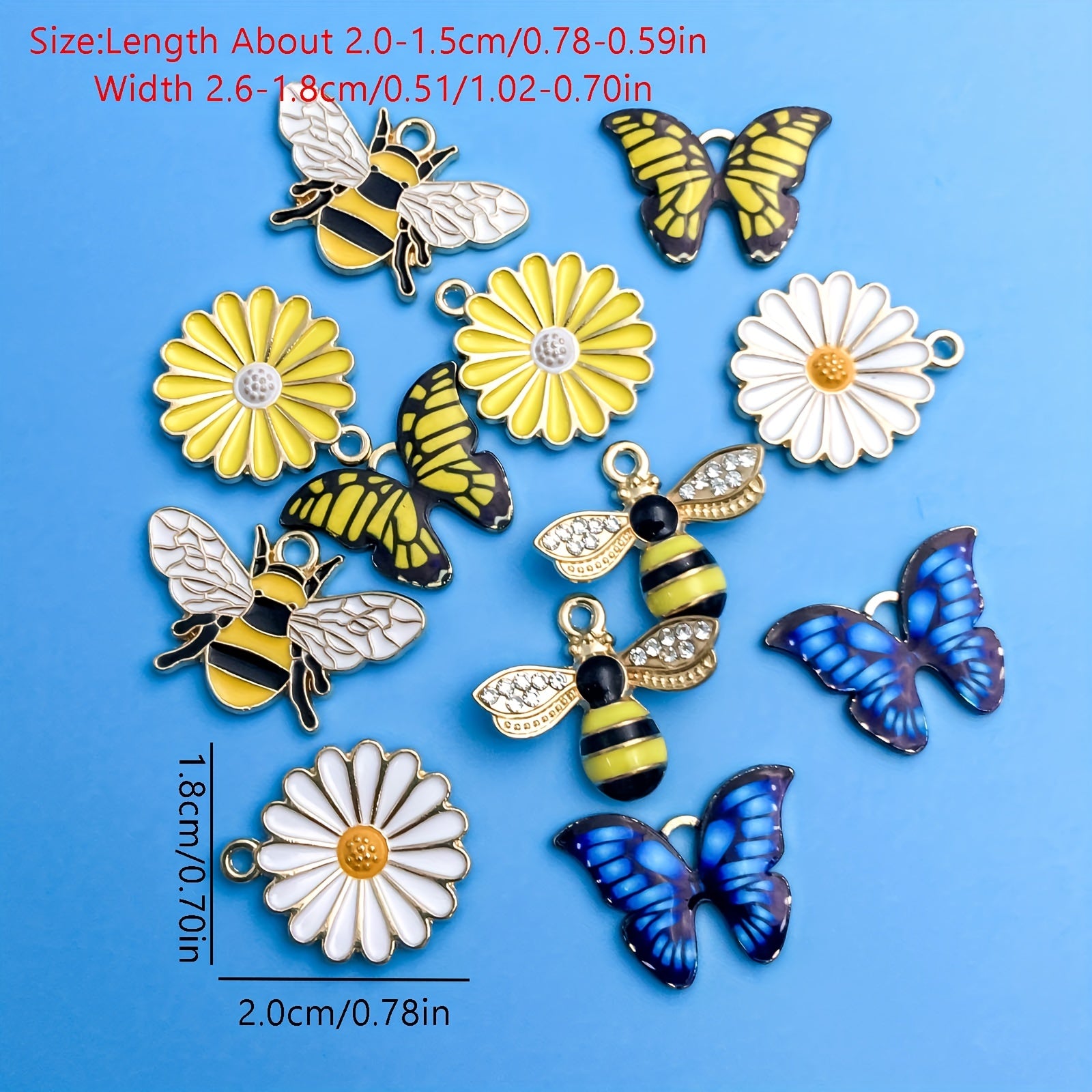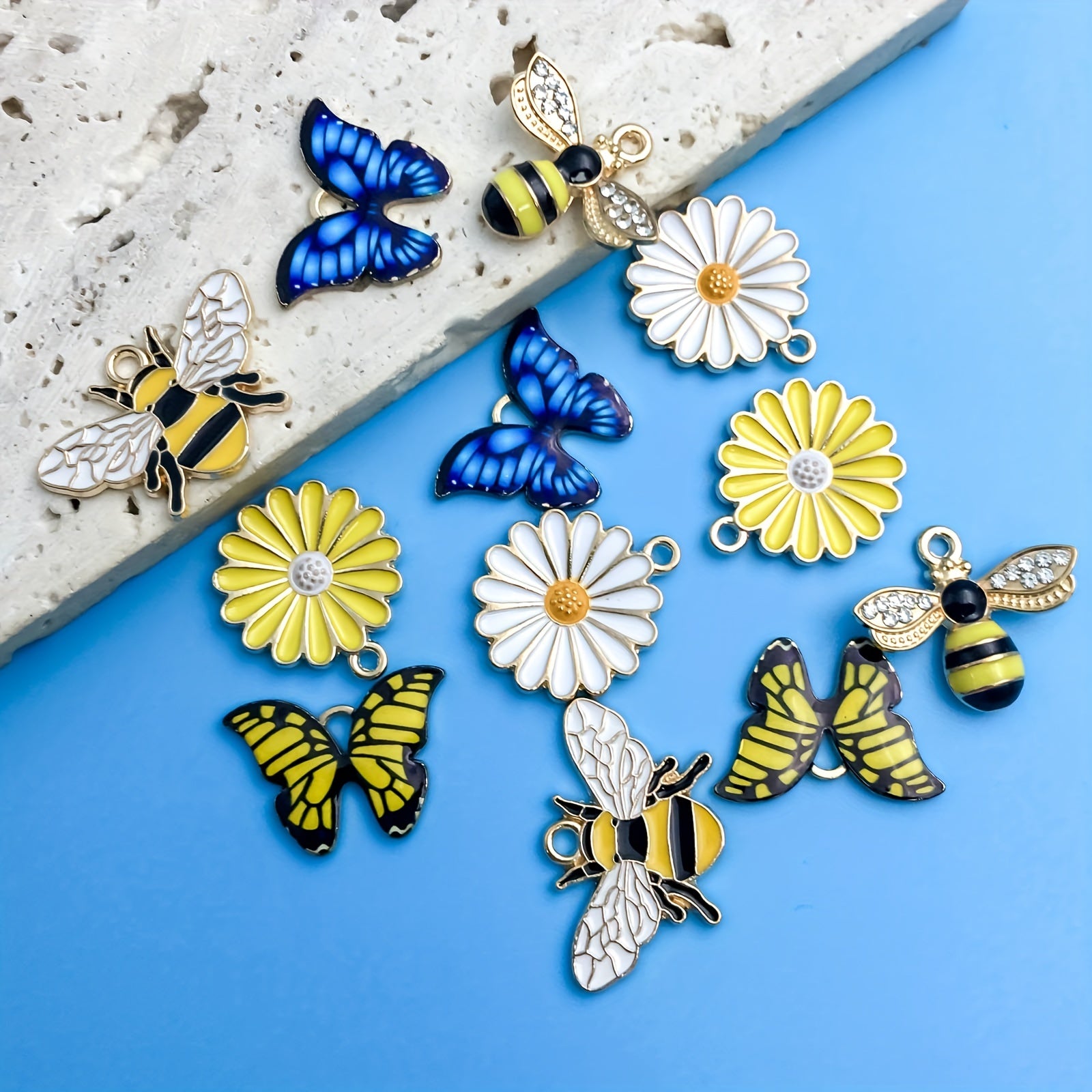 This pack of 12 small pendants features bee, butterfly, and flower shapes. Perfect for DIY necklace, bracelet, and other jewelry projects.