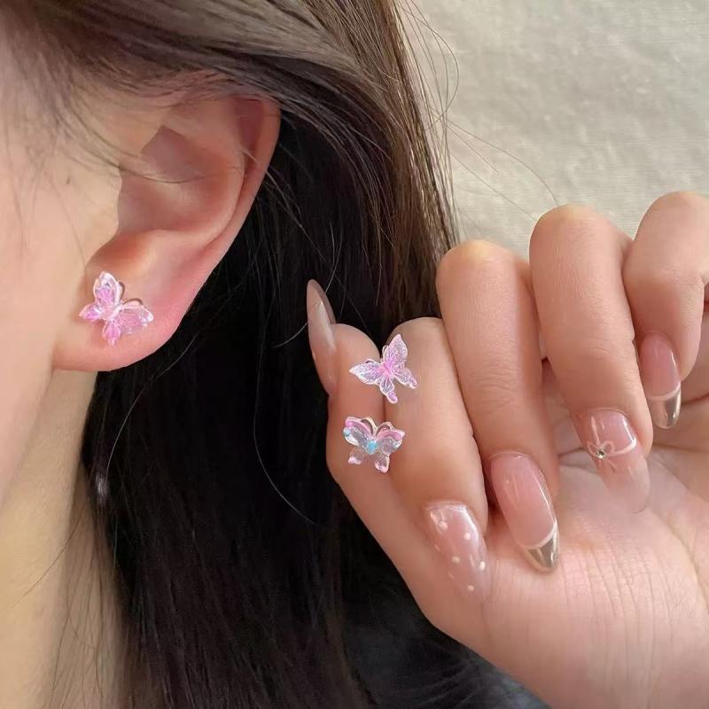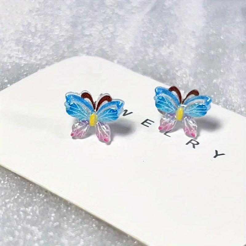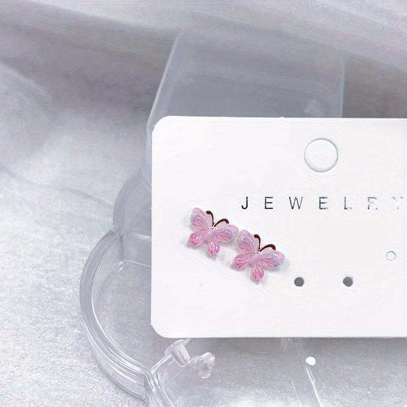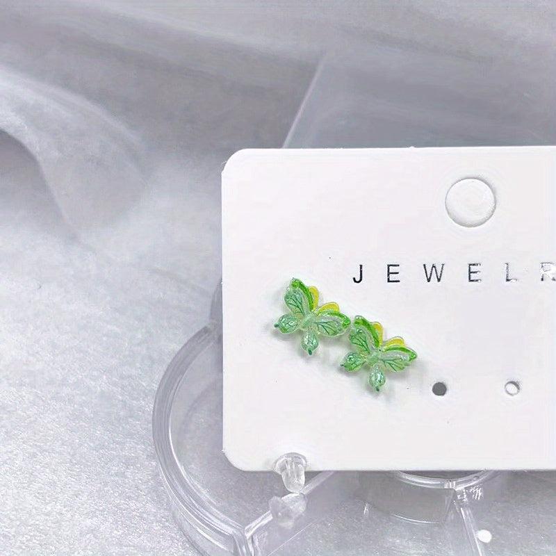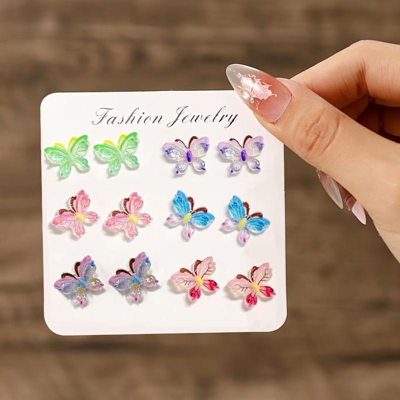 These butterfly resin earrings are perfect for daily wear or parties. The set includes 12 earrings in vibrant colors, ideal for adding a pop of color to any outfit. Made with hypoallergenic plastic posts, they are suitable for sensitive ears.