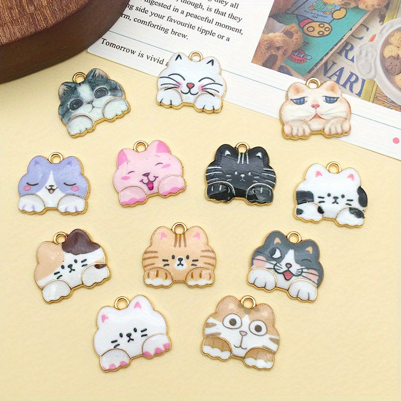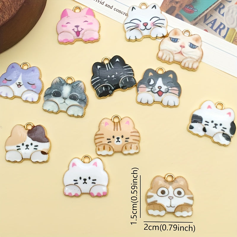 Get this set of 12 charming 15x20mm enamel golden zinc alloy cat pendants perfect for creating your own earrings, bracelets, necklaces, and more.