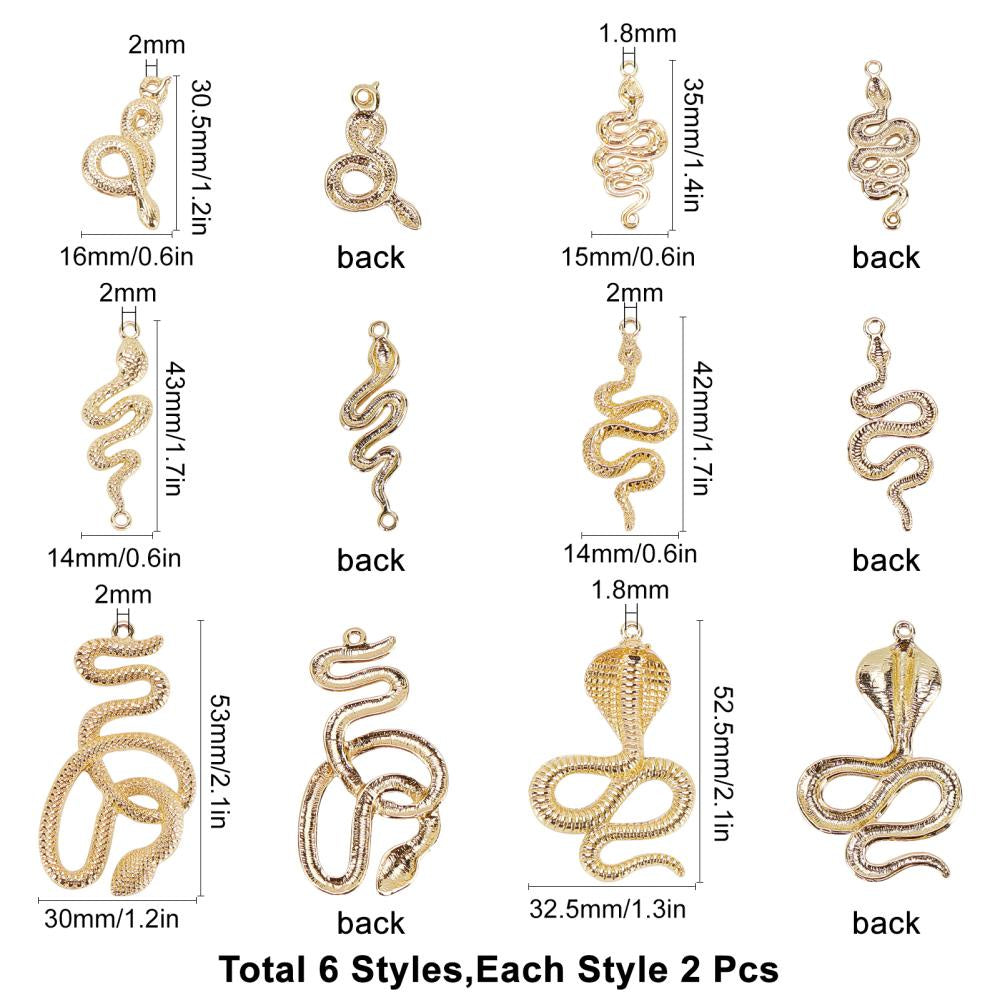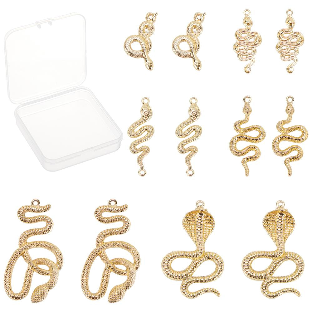 This set includes 12 light golden snake alloy connectors for creating your own earrings, bracelets, necklaces, and other accessories. These connectors are cadmium and lead-free.