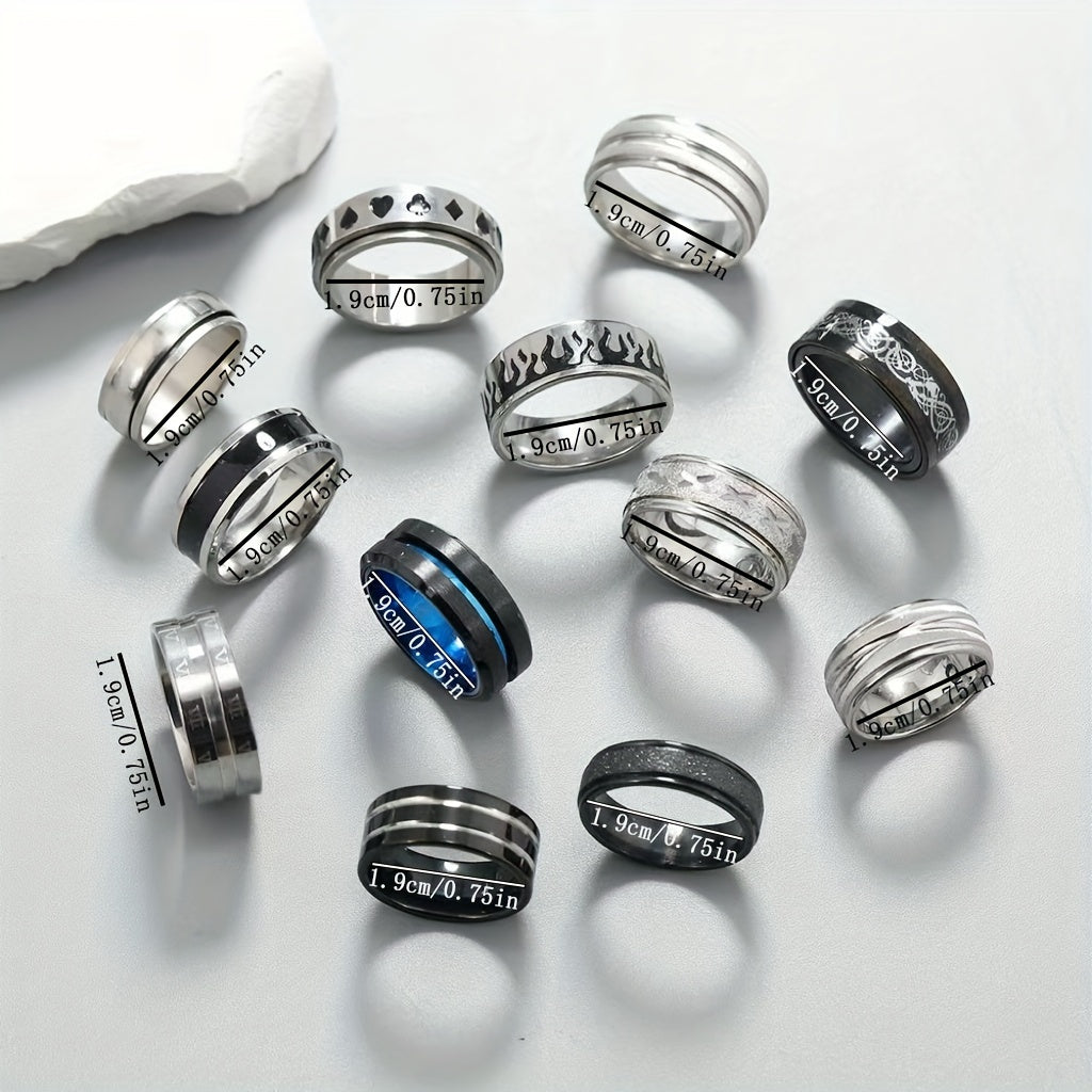Elegant set of 12 stainless steel rings with dragon pattern design. Corrosion-resistant and durable, perfect for everyday wear.