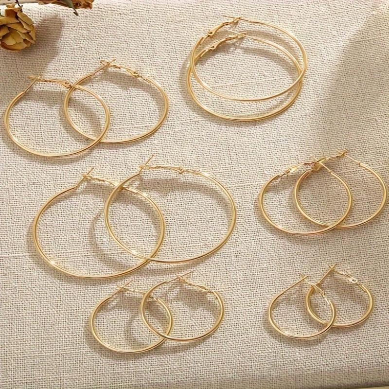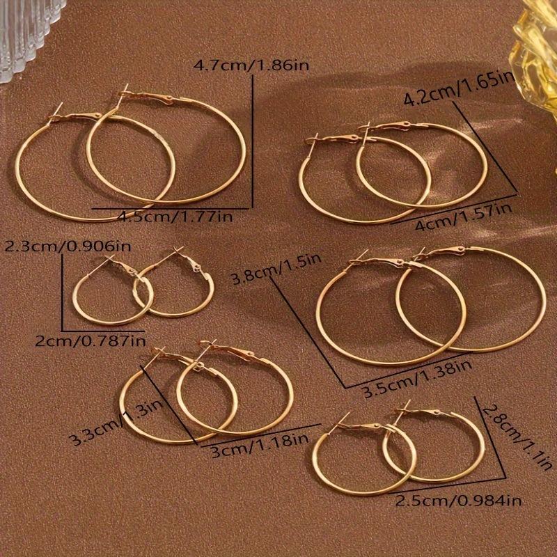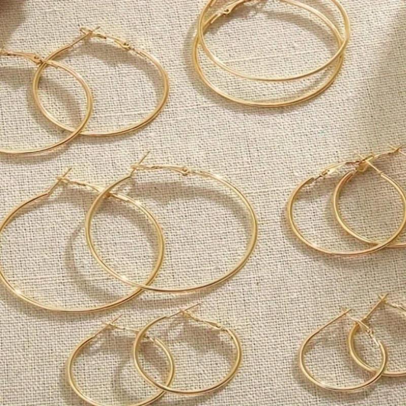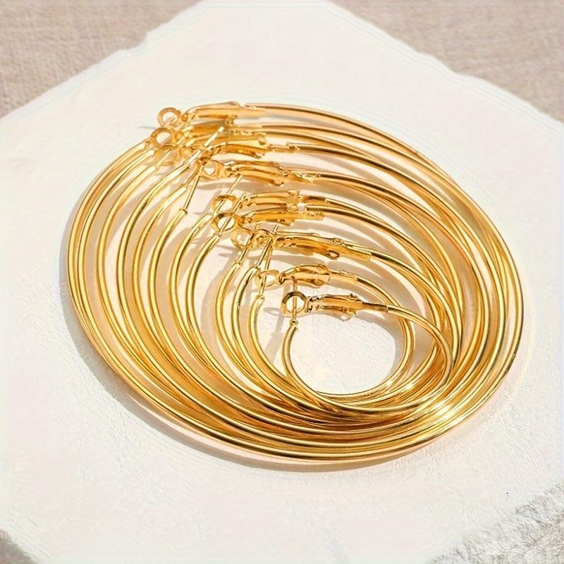Upgrade your accessories with this fashionable set of 12 glossy metal earrings. Perfect for everyday wear or special occasions.