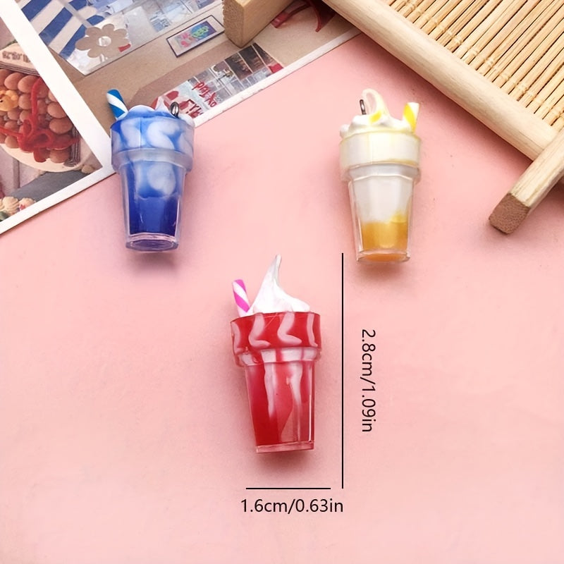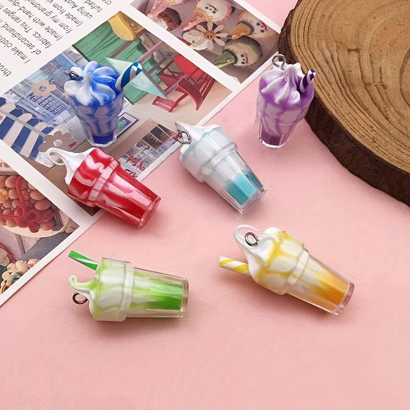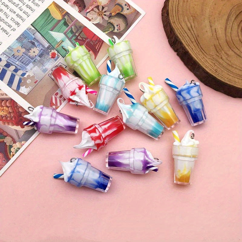 Create your own unique jewelry with this 12-piece set of milkshake-themed resin pendants. Perfect for necklaces, bracelets, earrings, and more!